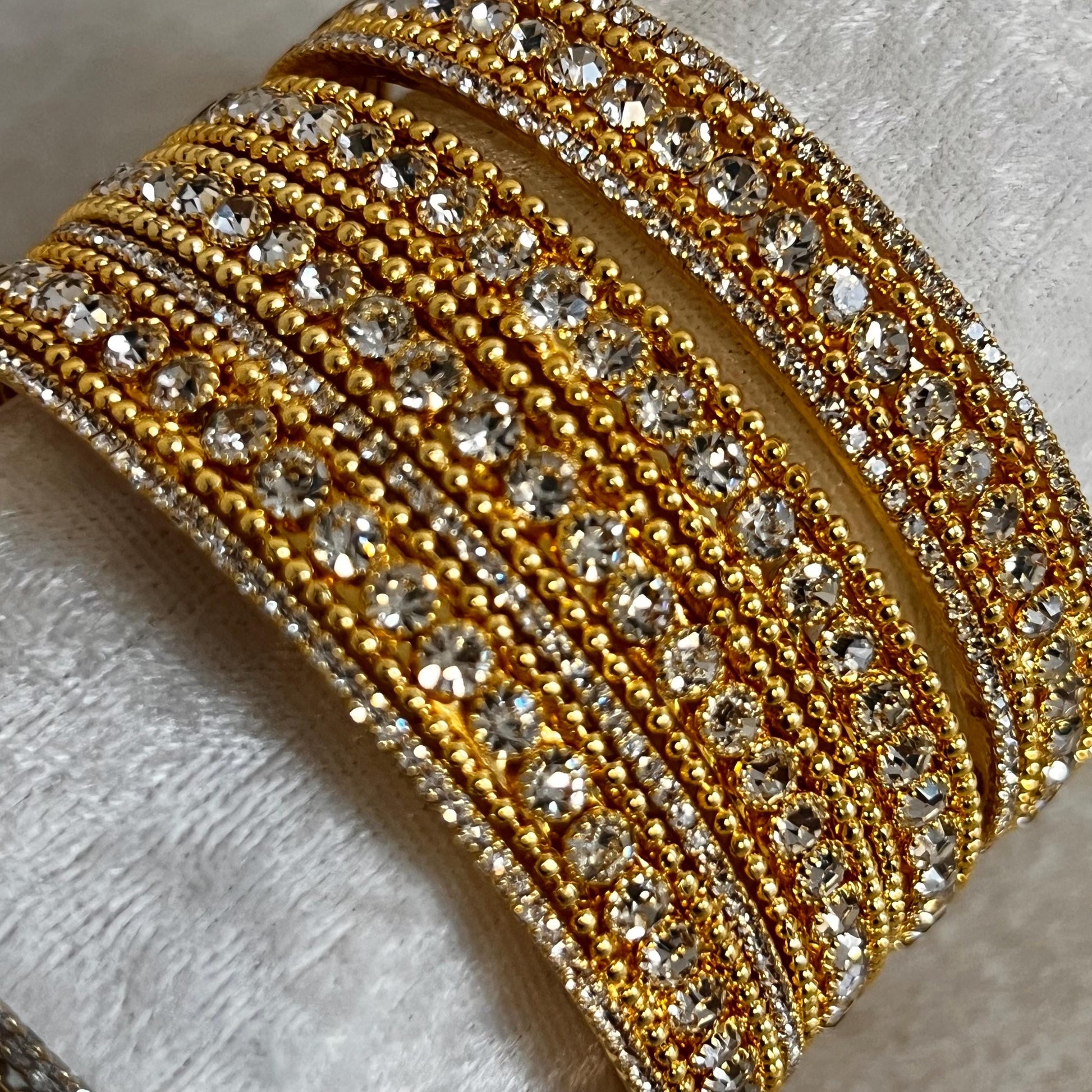 2.8 Set of 4 Bangles in Antique/Bright Gold/ Golden/ Clear Rhinestone/2 chunky 2 thin bangles. Choose Colour/ Simple Statement Bangles Ends