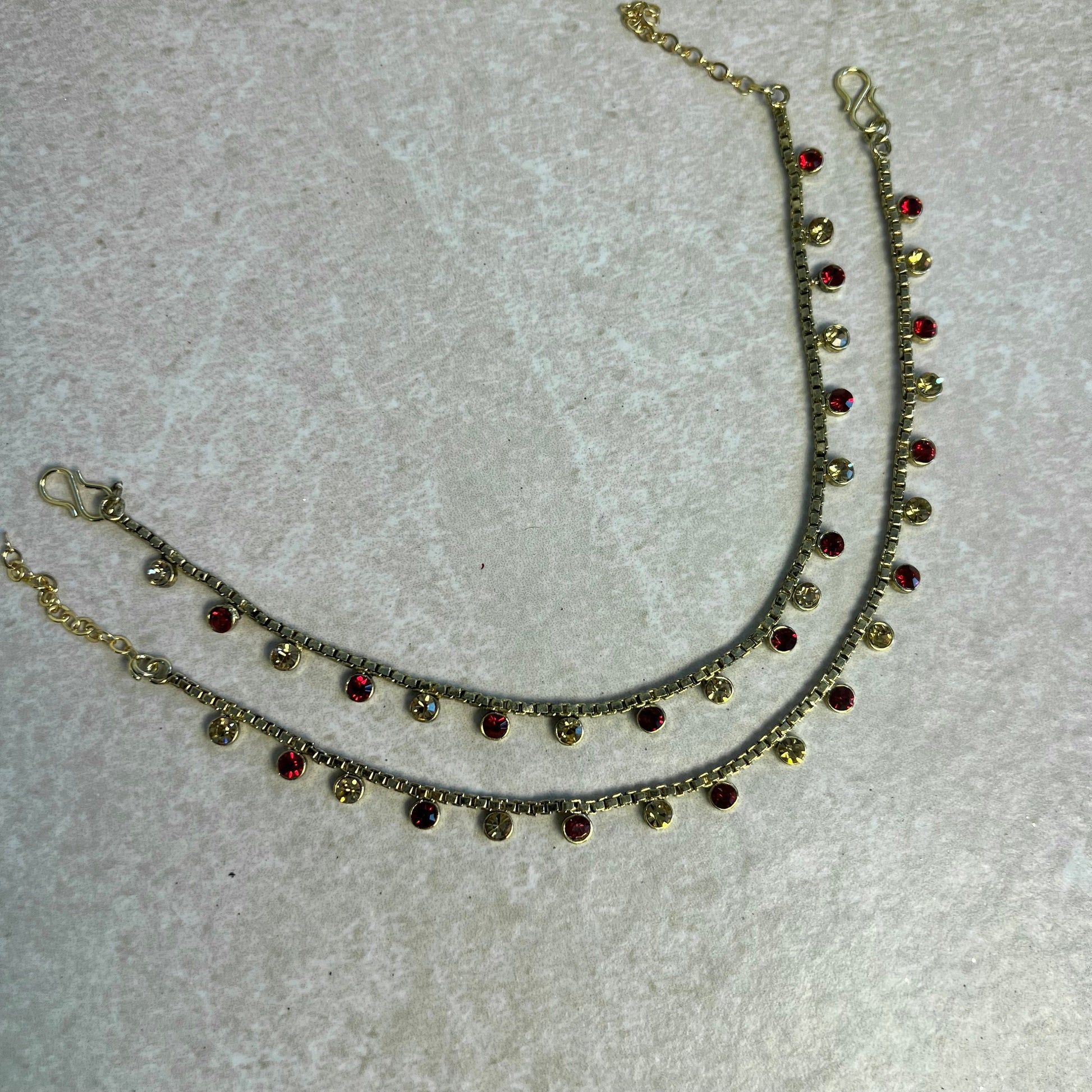 Anklets Maroon and Gold- Rhinestones/Indian/ Pakistani Style Jhanjra/ Foot Accessory/Valentines gifts