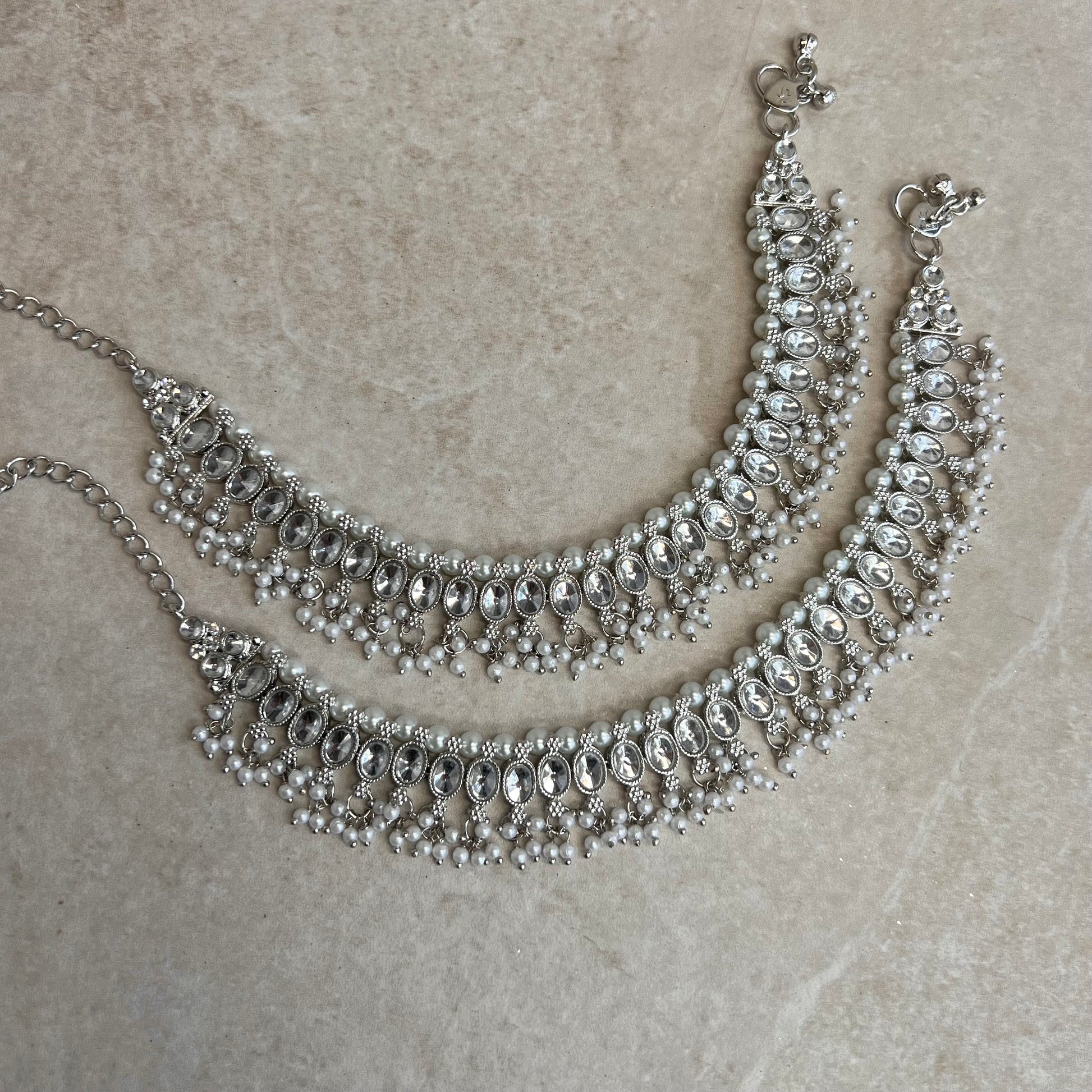 Anklets Silver- Rhinestones/Indian/ Pakistani Style Jhanjra