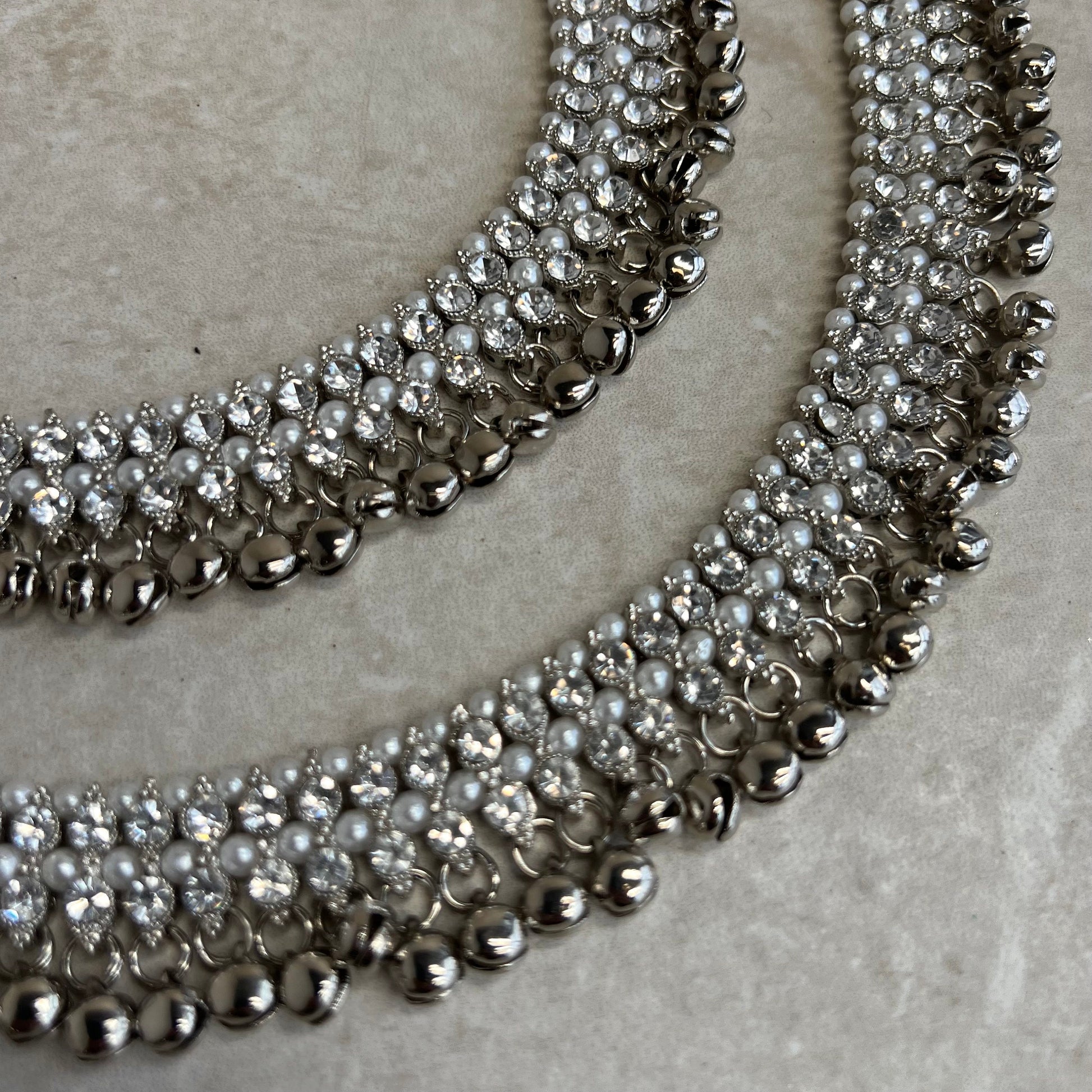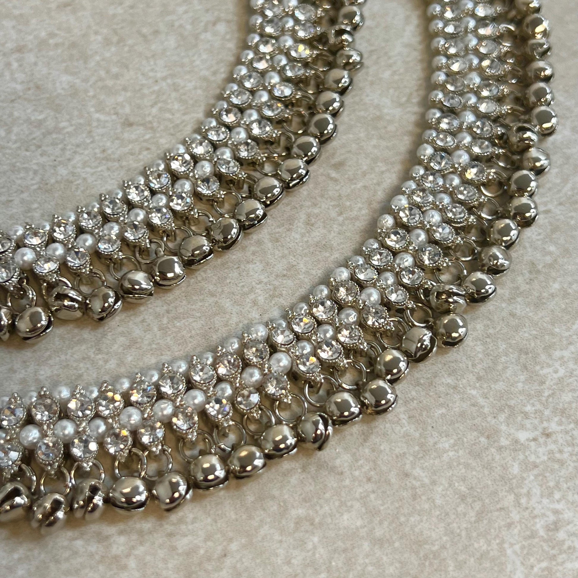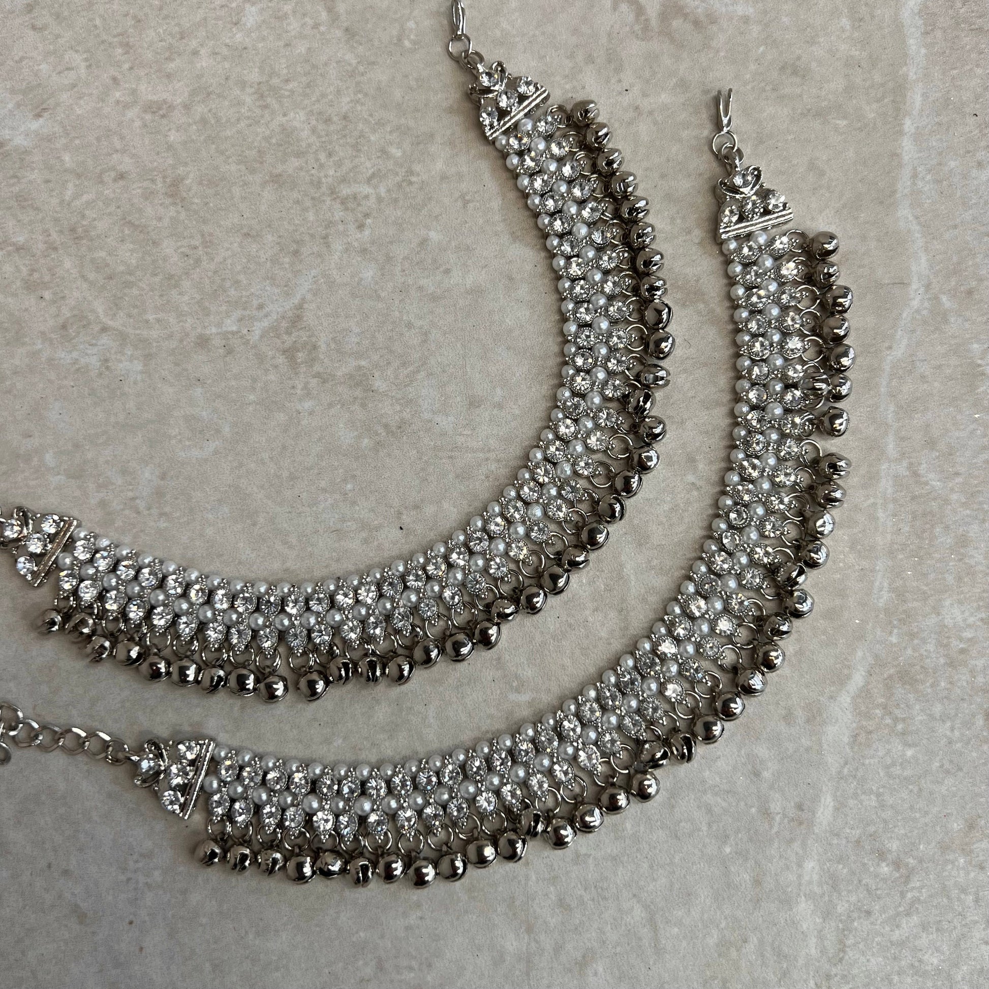Anklets Silver Rhinstone/ Bell Detail /Indian/ Pakistani Style Jhanjra/ Foot Accessory