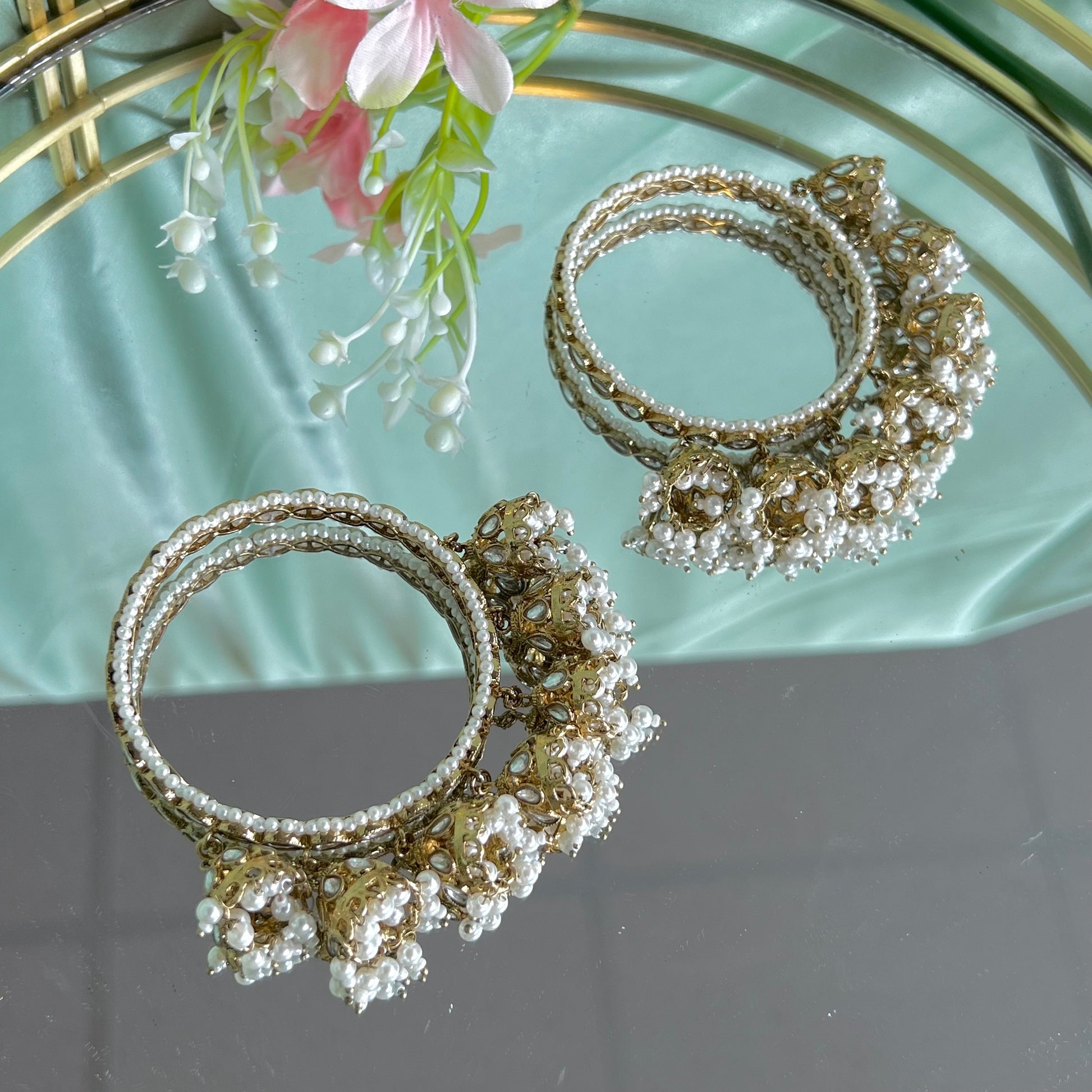 Add this to your bangle set if you‘re a jhumka lover for a complete look!