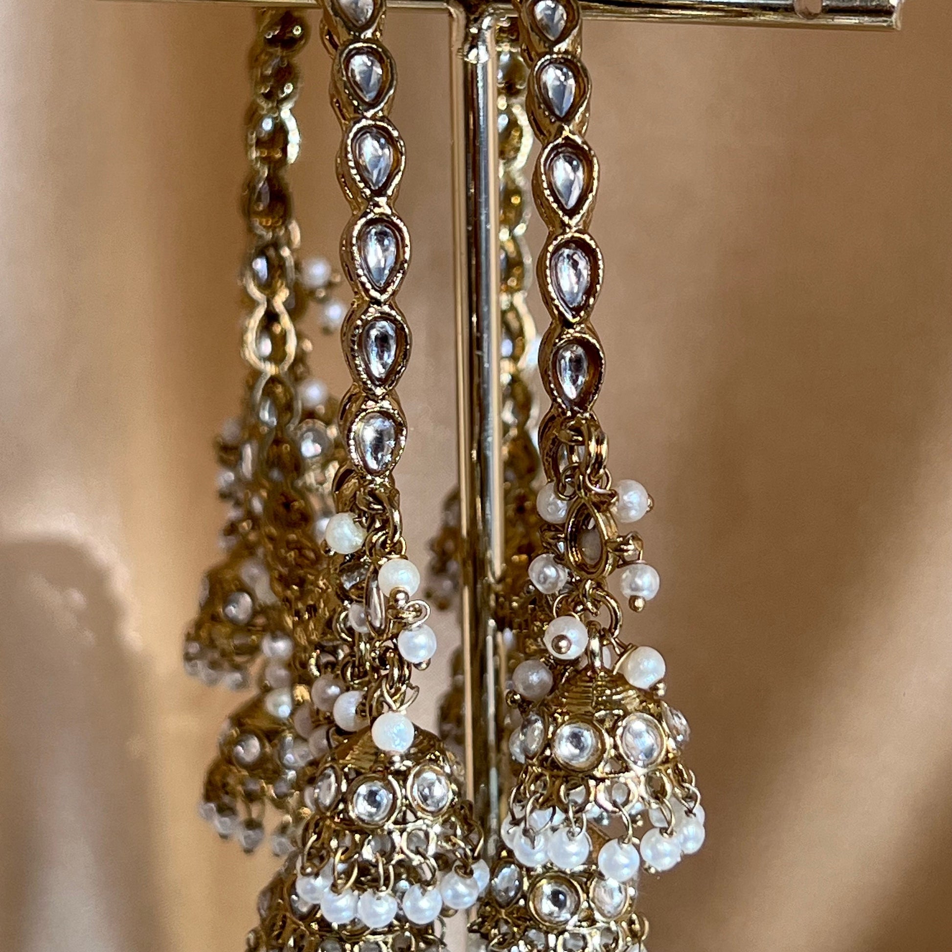 Antique Gold 7 Long Drop Jhumka Bangles - Clear/Indian/ Pakistani/Jewelley/ Fashion Bracelet