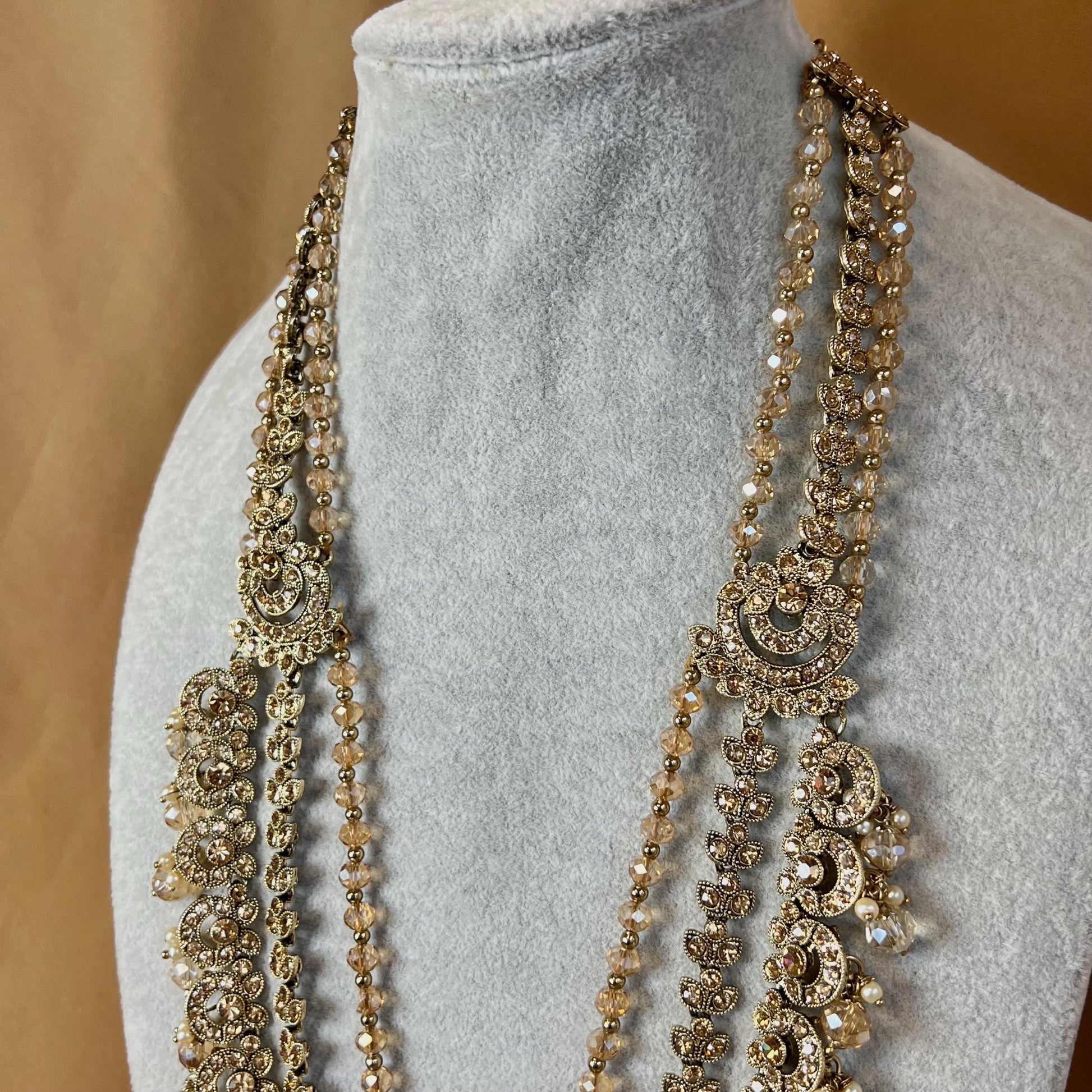 Antique Gold and Champagne Bridal Necklace Indian/ Pakistani Style With Long necklace/ Mala Haar Wedding Guest.