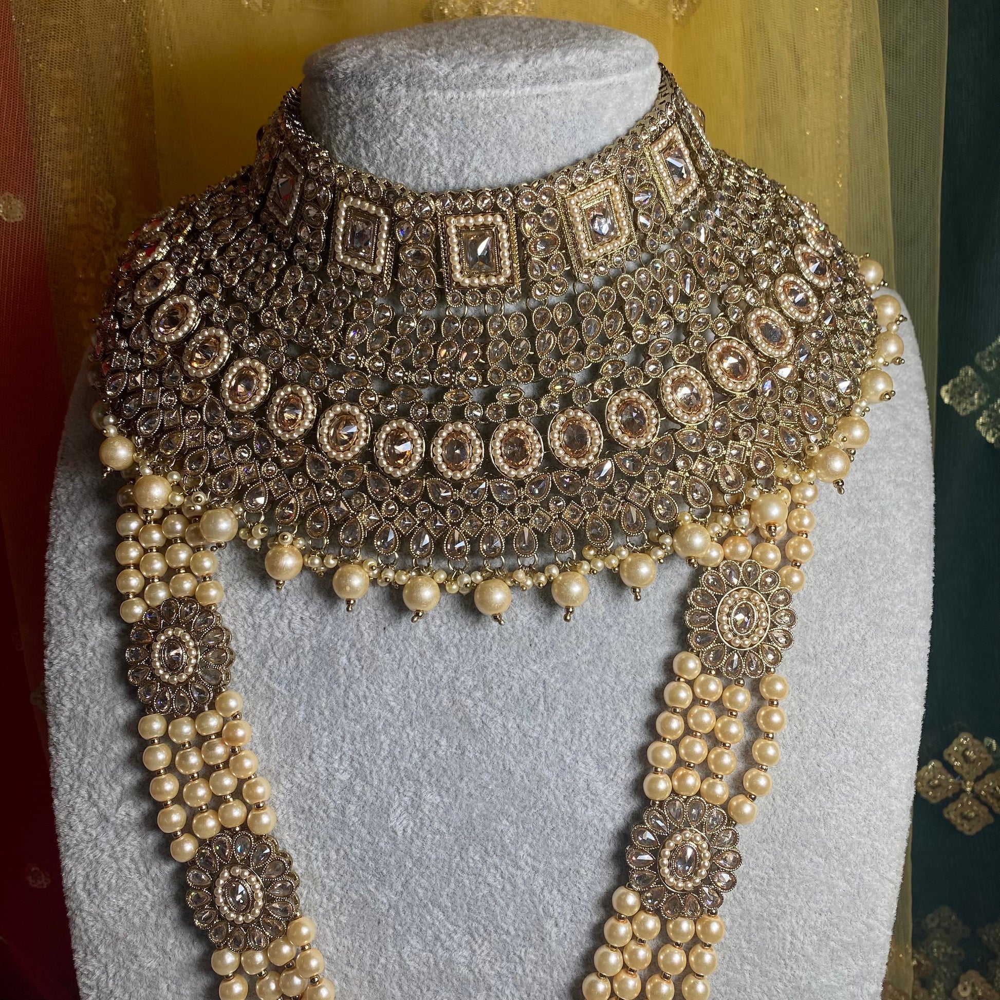 Antique Gold and Champagne Full Bridal set Indian/ Pakistani Style/ Wedding/ Fashion Jewellery/ Necklace set