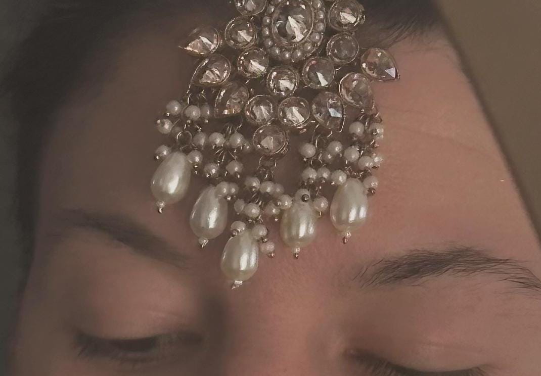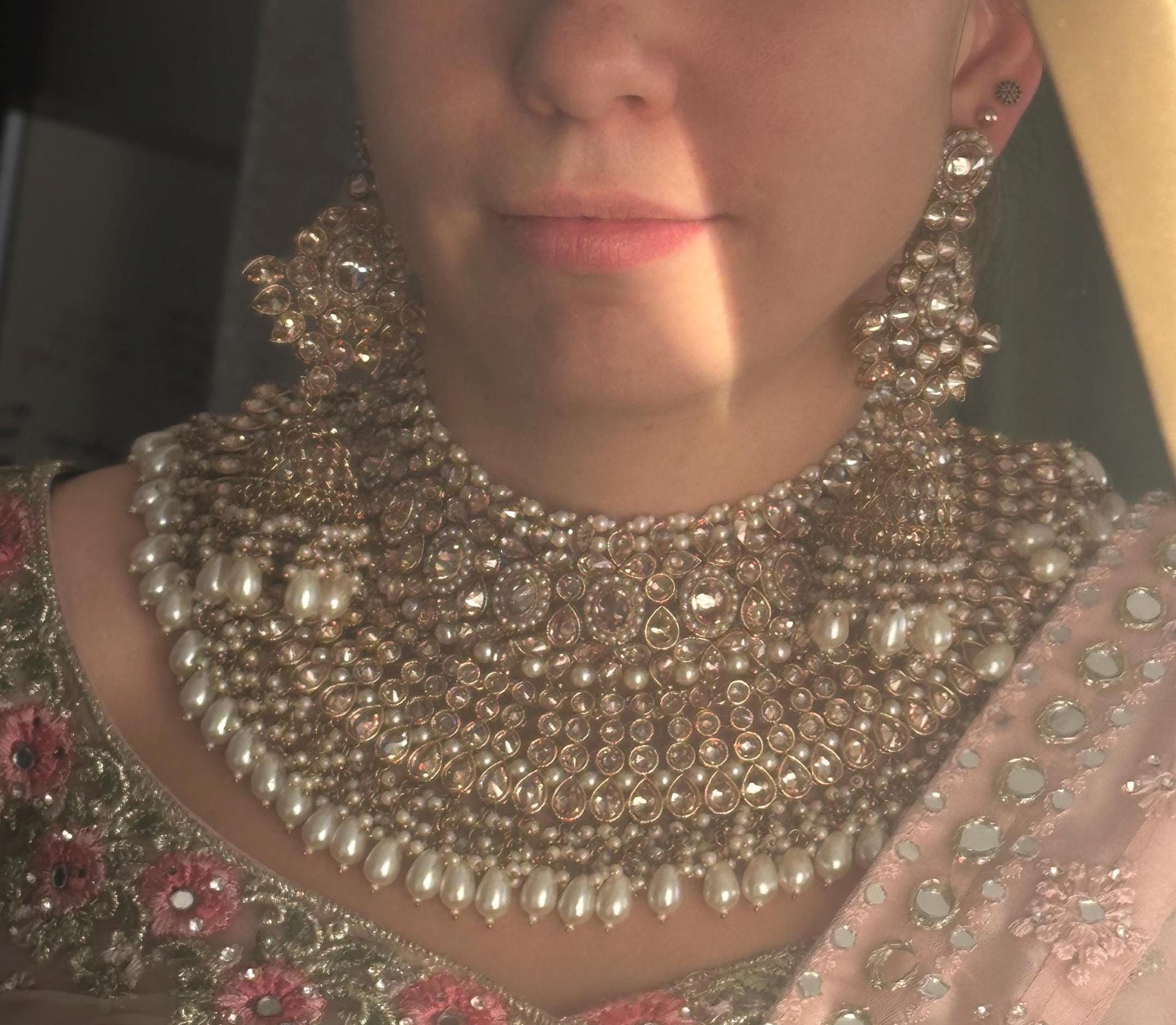 Antique gold & Champagne Double Bridal necklace set/Indian/ Pakistani Style/Wedding/Earring/Tikka