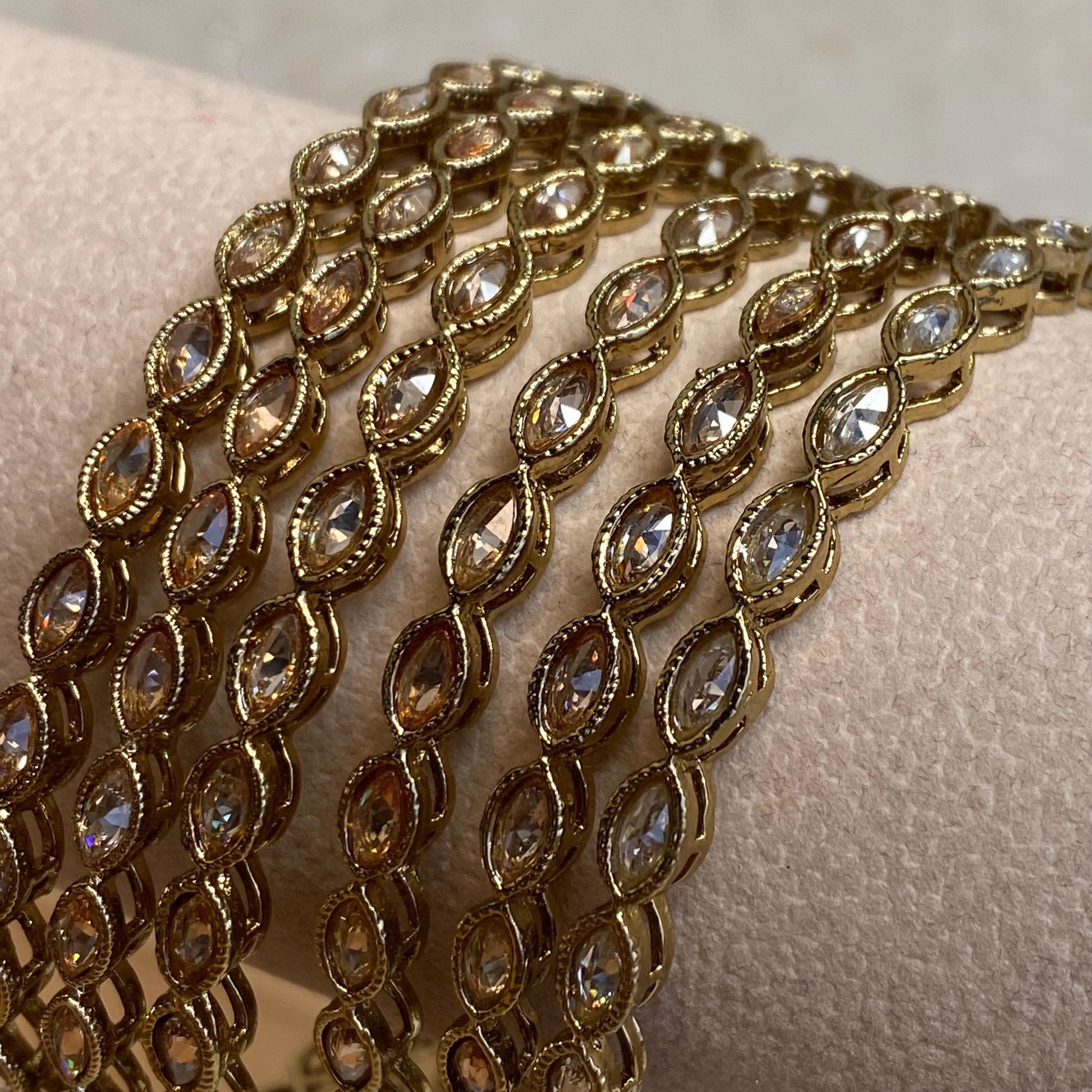 Antique Gold Champagne Zircon Crystal High Quality 1 x Single Bangle Bracelet Indian Pakistani Bollywood Fashion Jewellery Gift for Her SALE