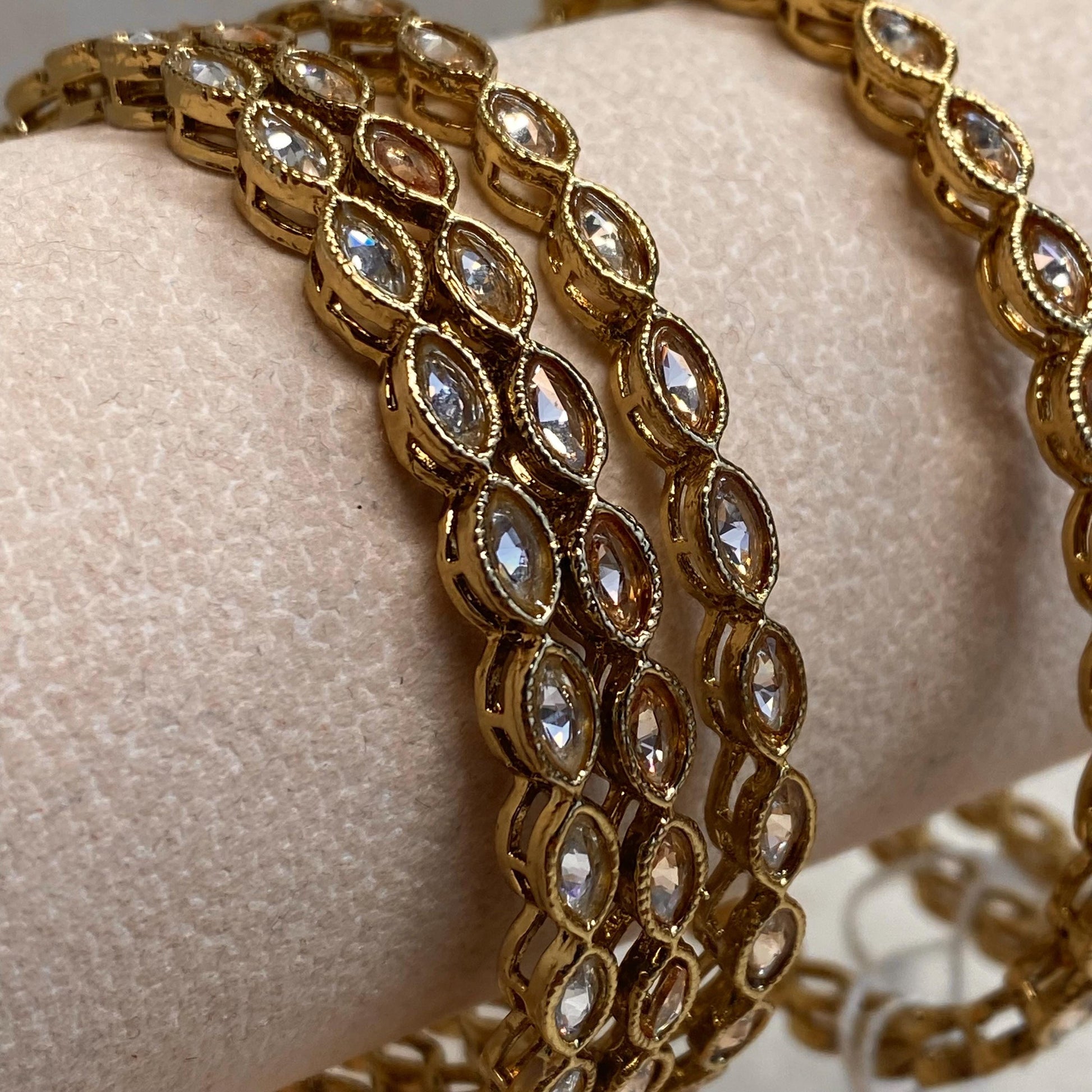 Antique Gold Champagne Zircon Crystal High Quality Set of 2 Thin Bangle Bracelets Indian Pakistani Bollywood Fashion Jewellery Gift for Her