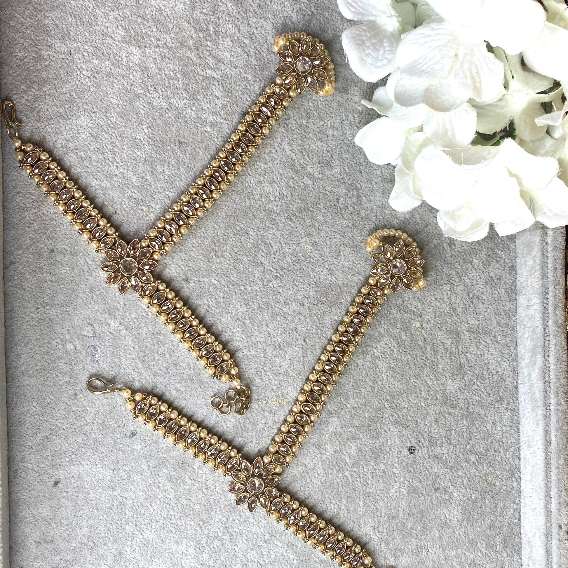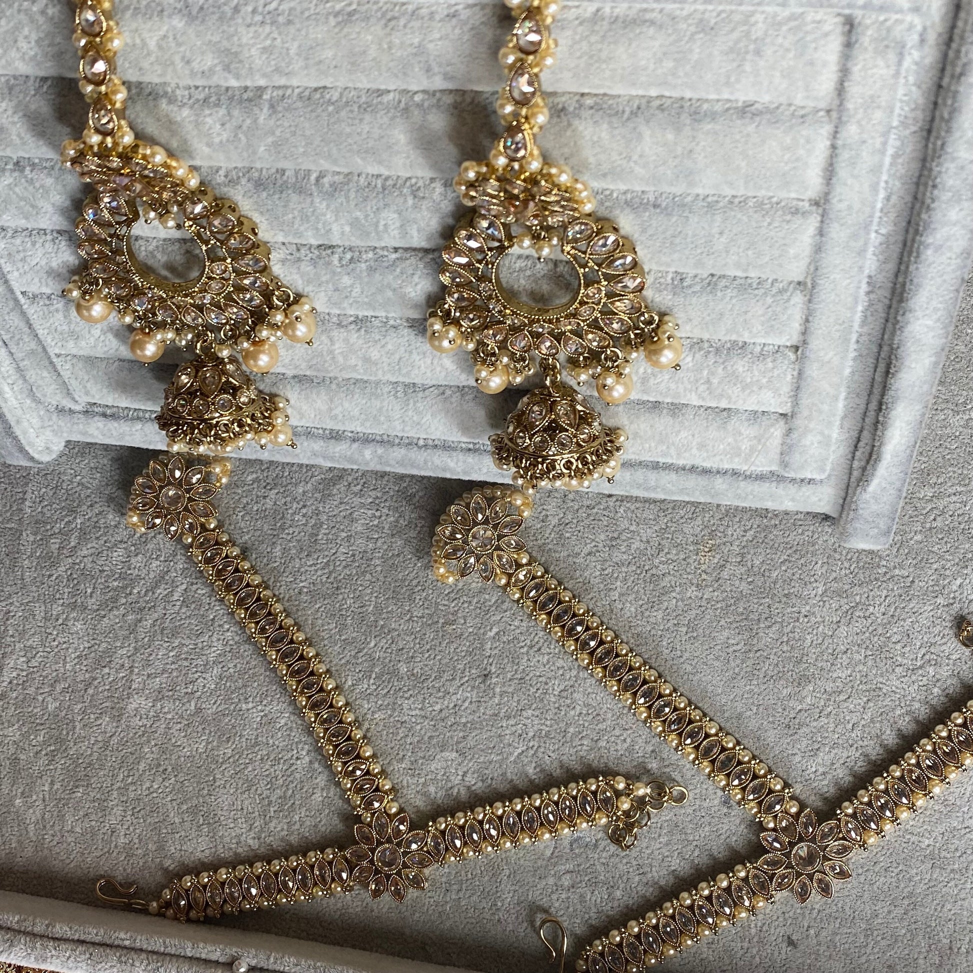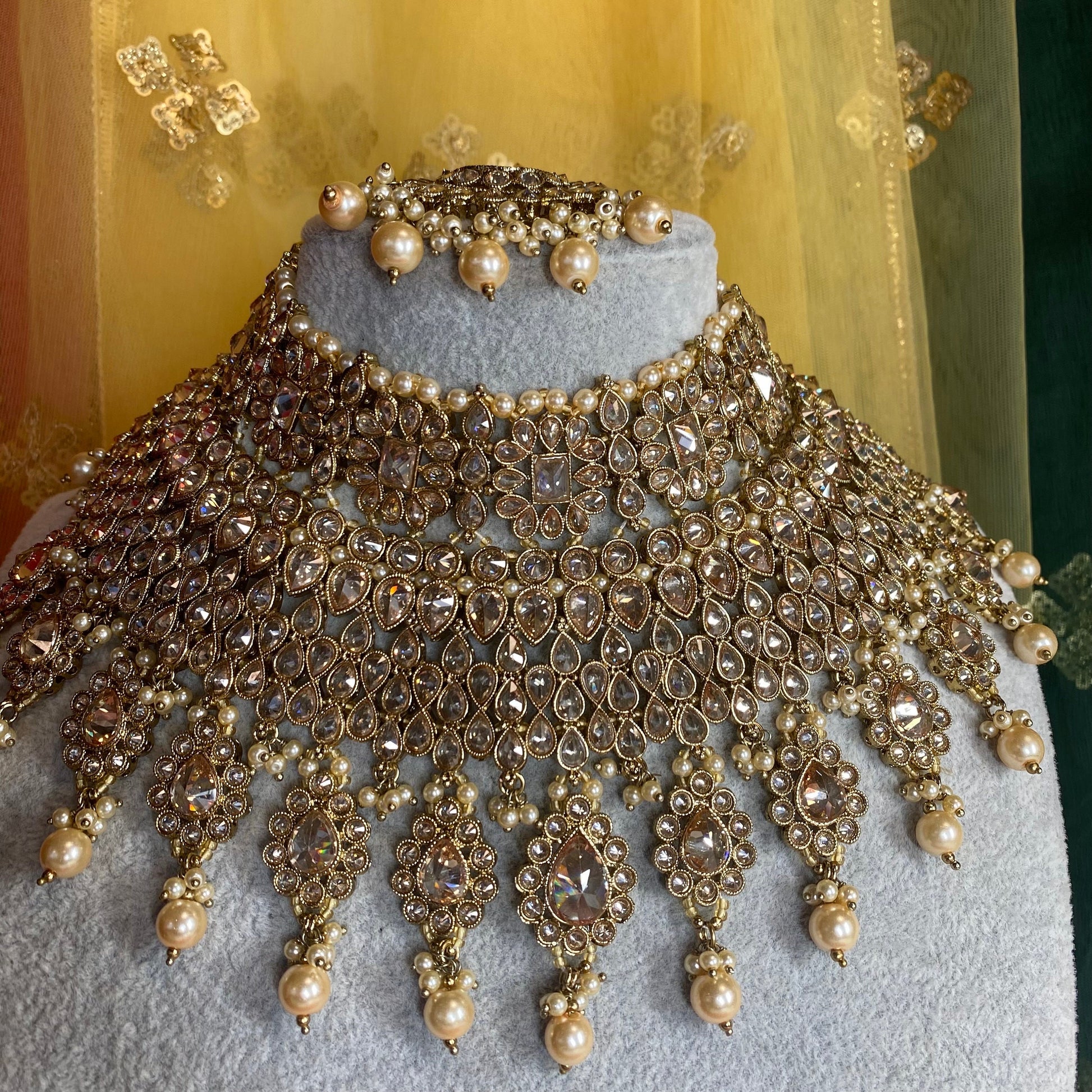 Antique Gold Crystal Full Bridal Set With Jhumar Indian/ Pakistani Style/ Wedding/ Fashion Jewellery/ Necklace set