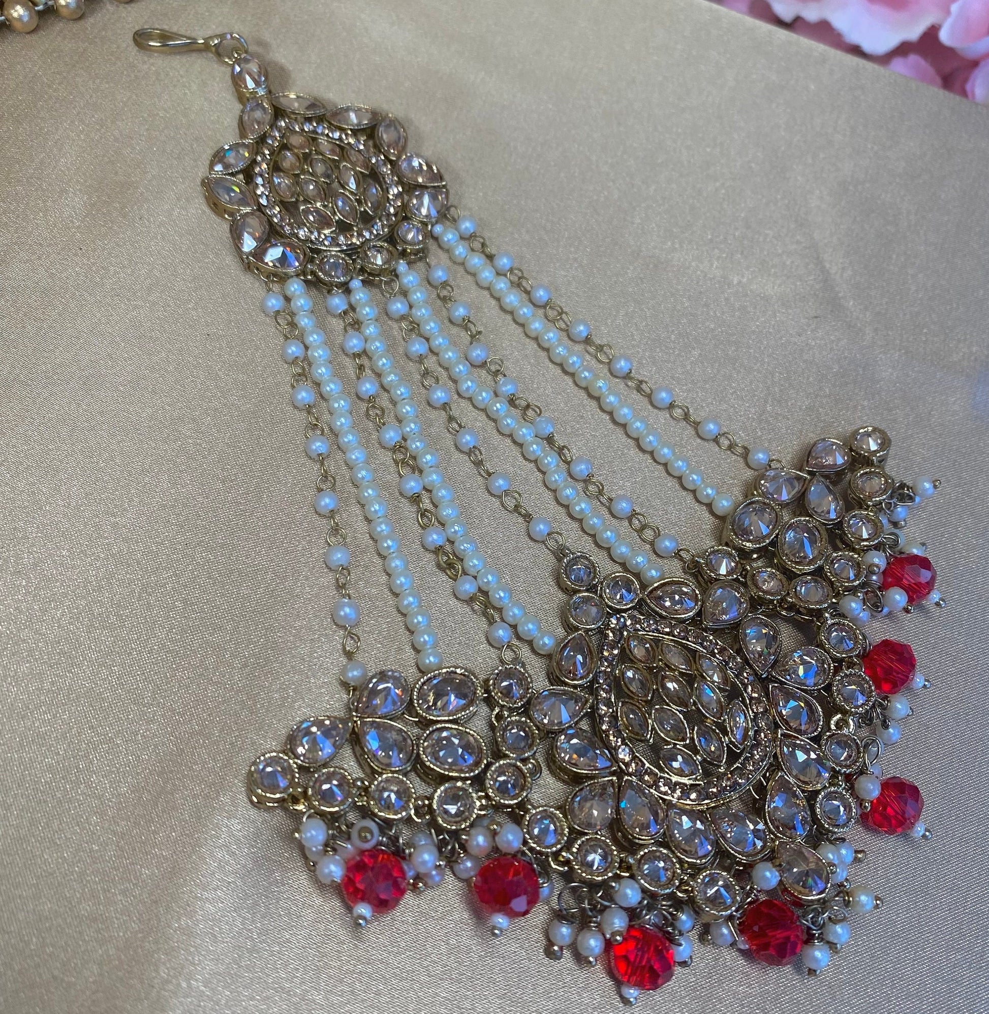 Antique Gold Jhumar - Red/ Passa/ Indian/ Pakistani Style/Headpieces