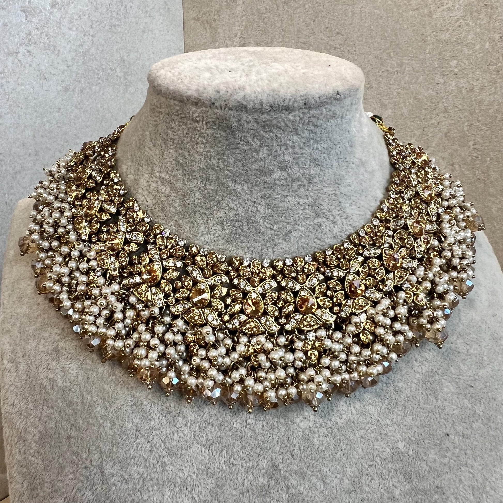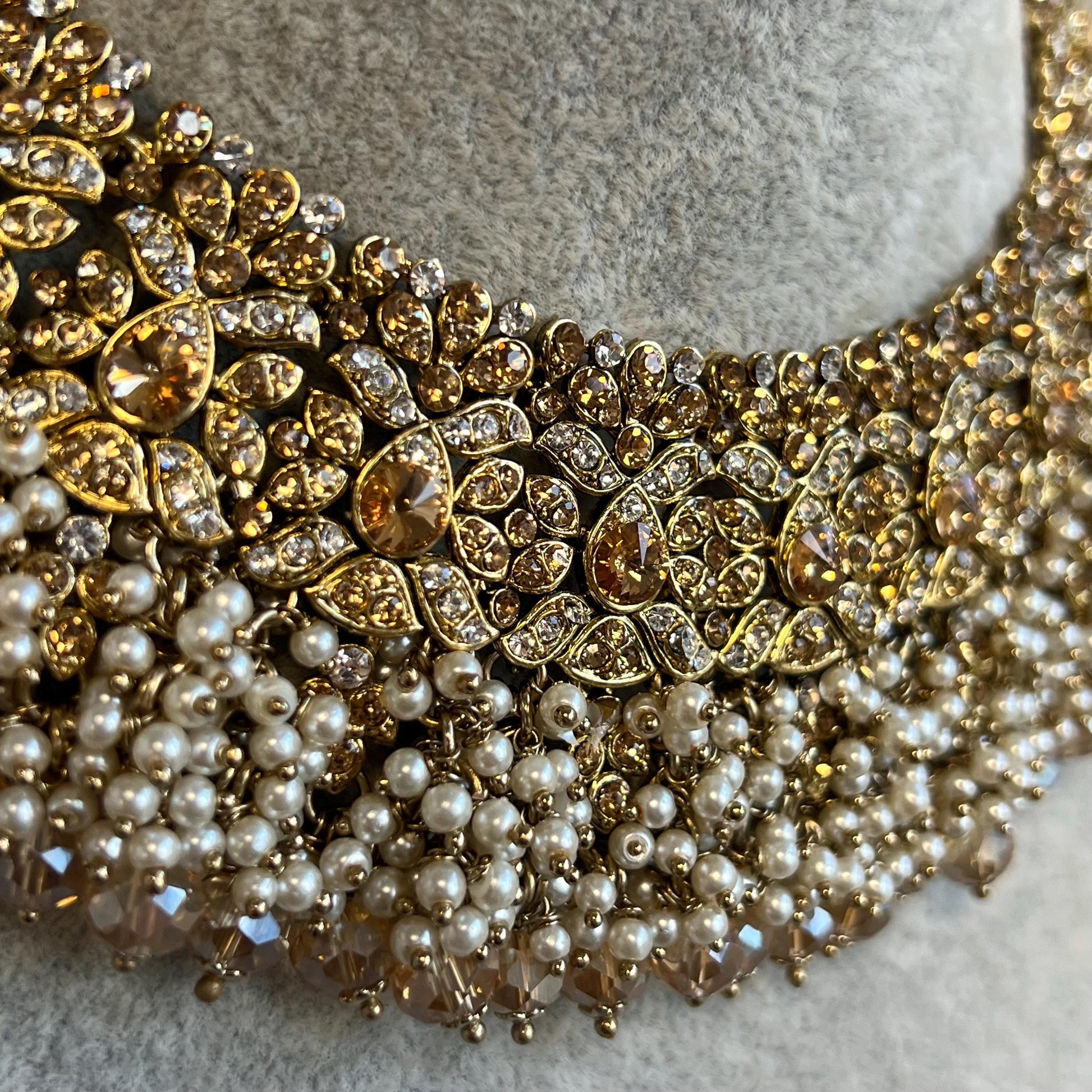 Antique Gold Necklace Only Golden Clear Rhinestone 2 inch Adjustable Jewellery Indian Pakistani Fashion Wedding Gift Bridal Guest Heavy