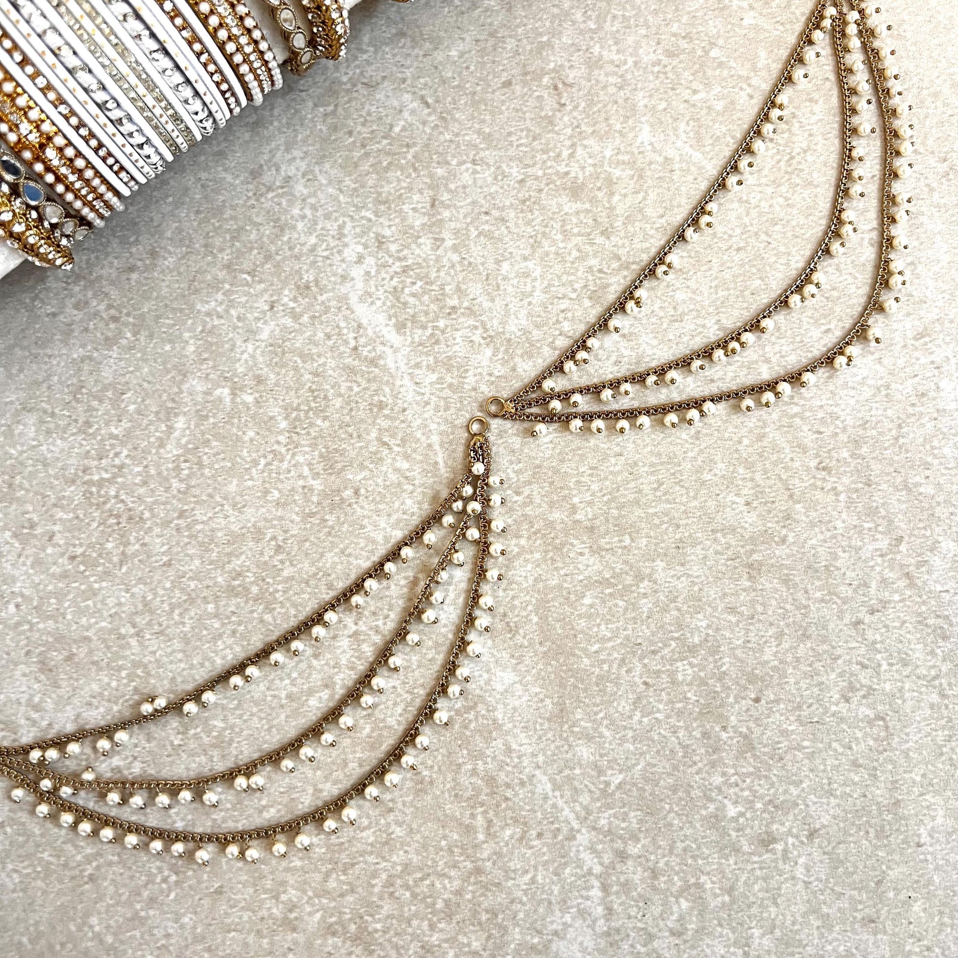 Antique Gold Pearl Ear Chains to add to any earring style. Bollywood (Saharey) / Indian Style Earring/ Fashion Jewellery/ Gift for Women