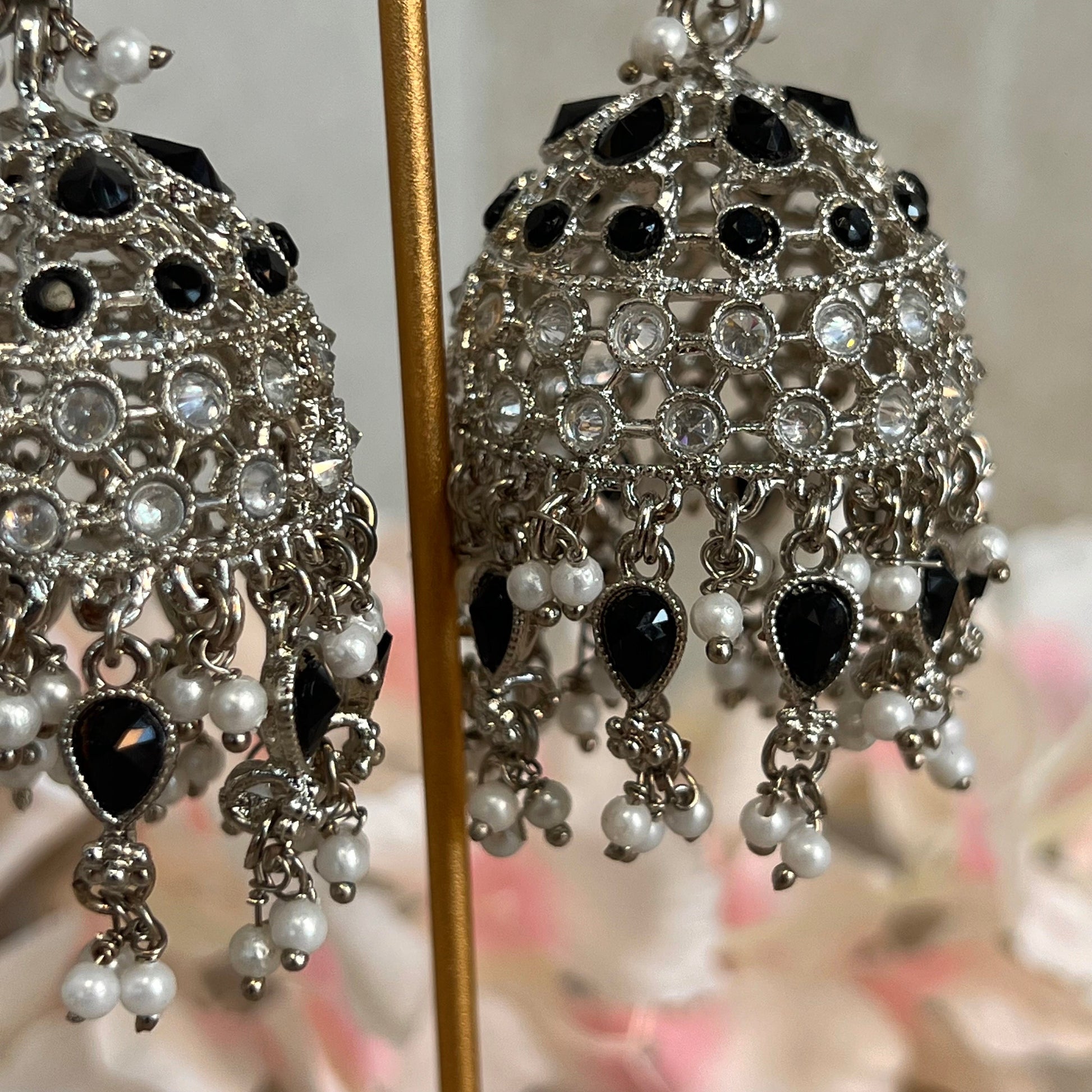 Black/ Zircon Crystal Large Vine Leaf Jhumka Earrings - Indian Style Earring/Pakistani Fashion/ Mendhi/Party/Haldi/ Diwali Gift/ Eid Gift