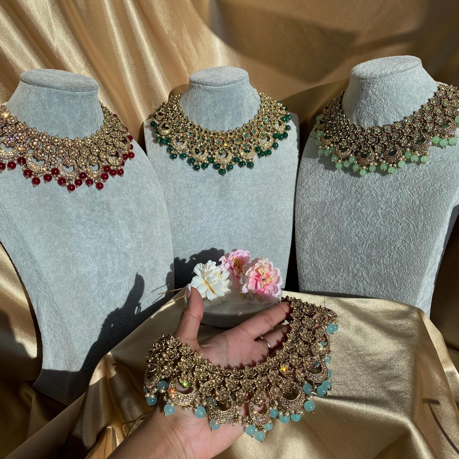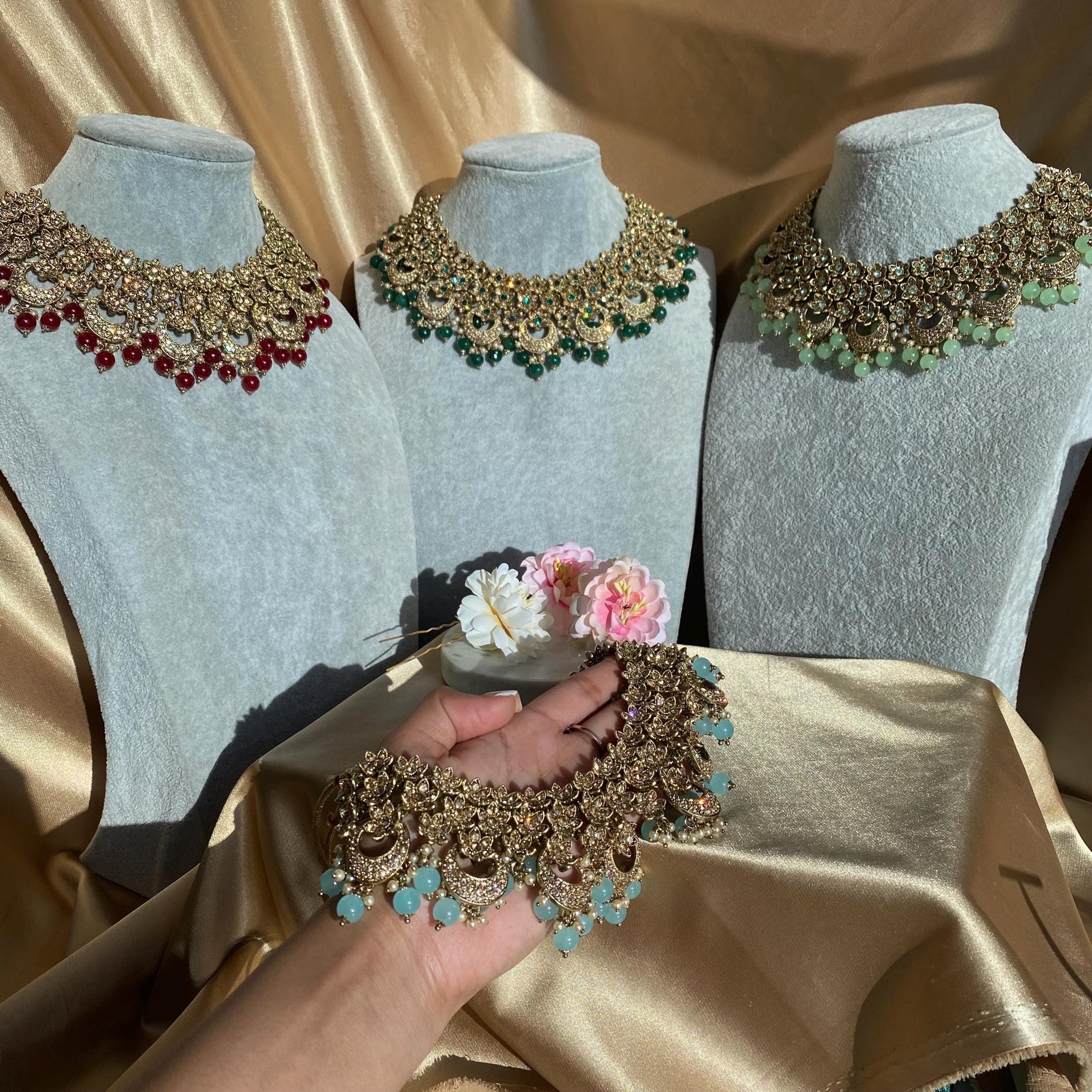 High quality antique gold and golden rhinestone, necklace set with adjustable string