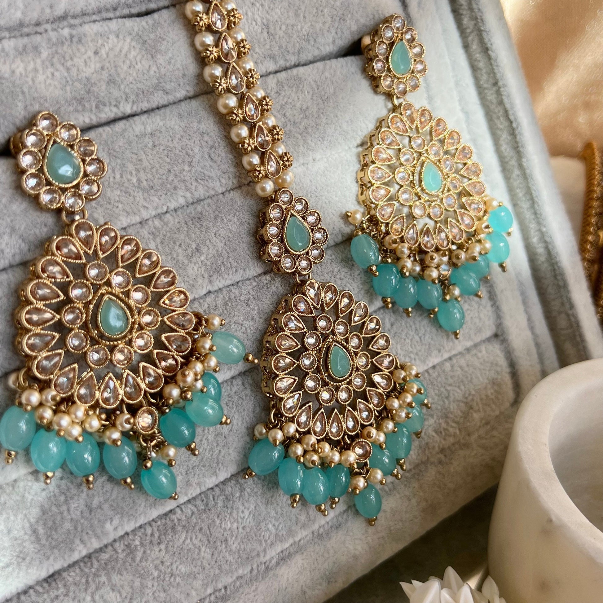 Blue Earring and Tikka/ Flat Earring Indian/ Pakistani Style