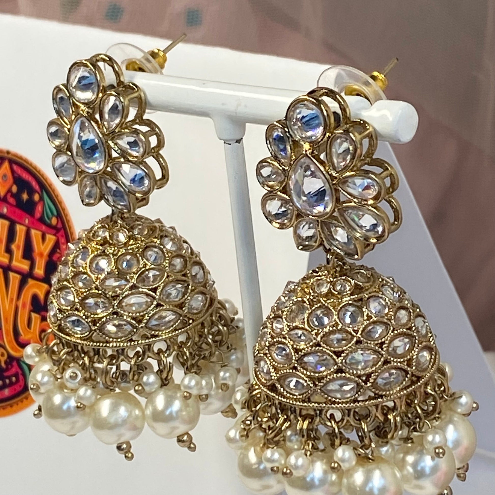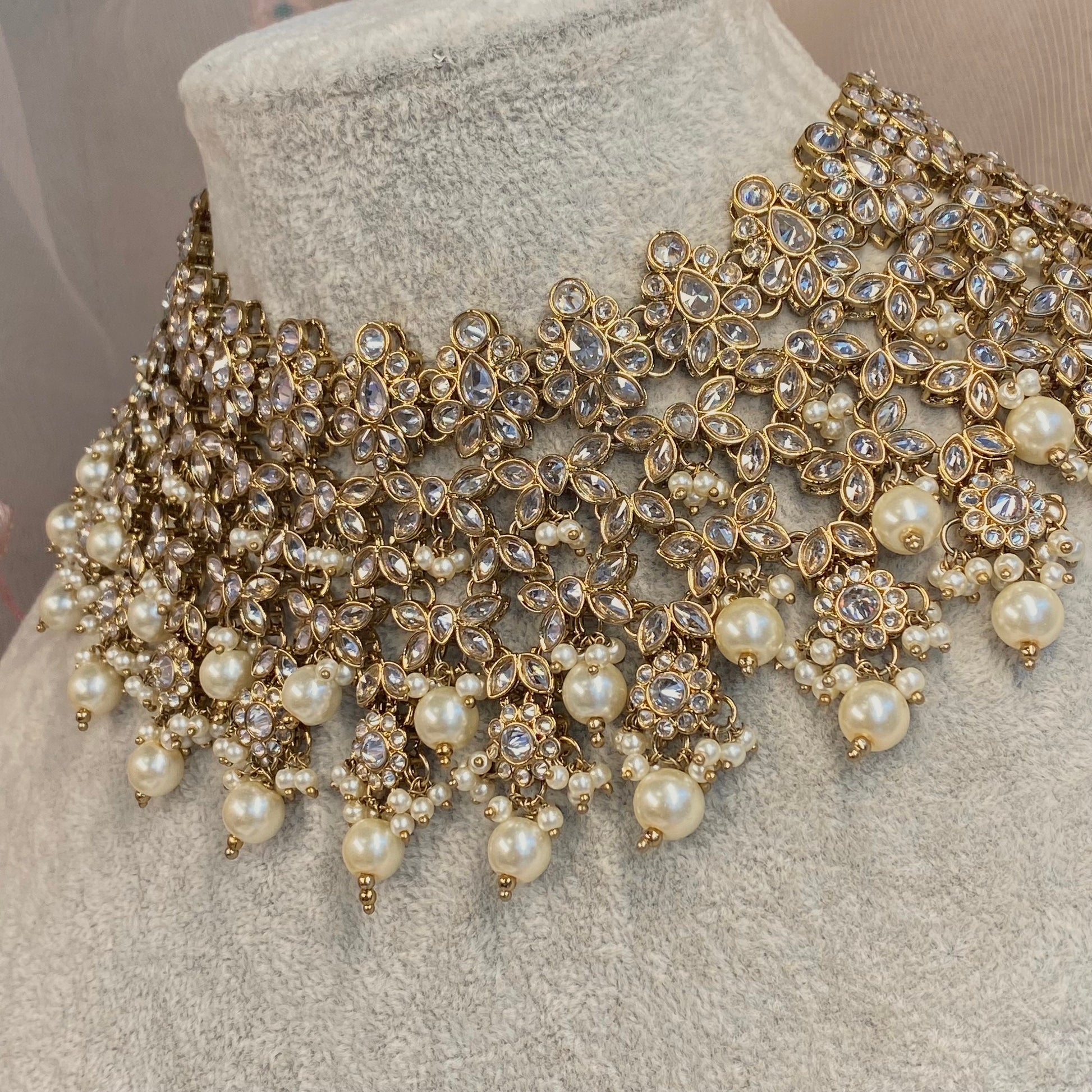 Bridal Clear Crystal Necklace set - Indian/ Pakistani Style/Bridal set/Wedding/ Light gold