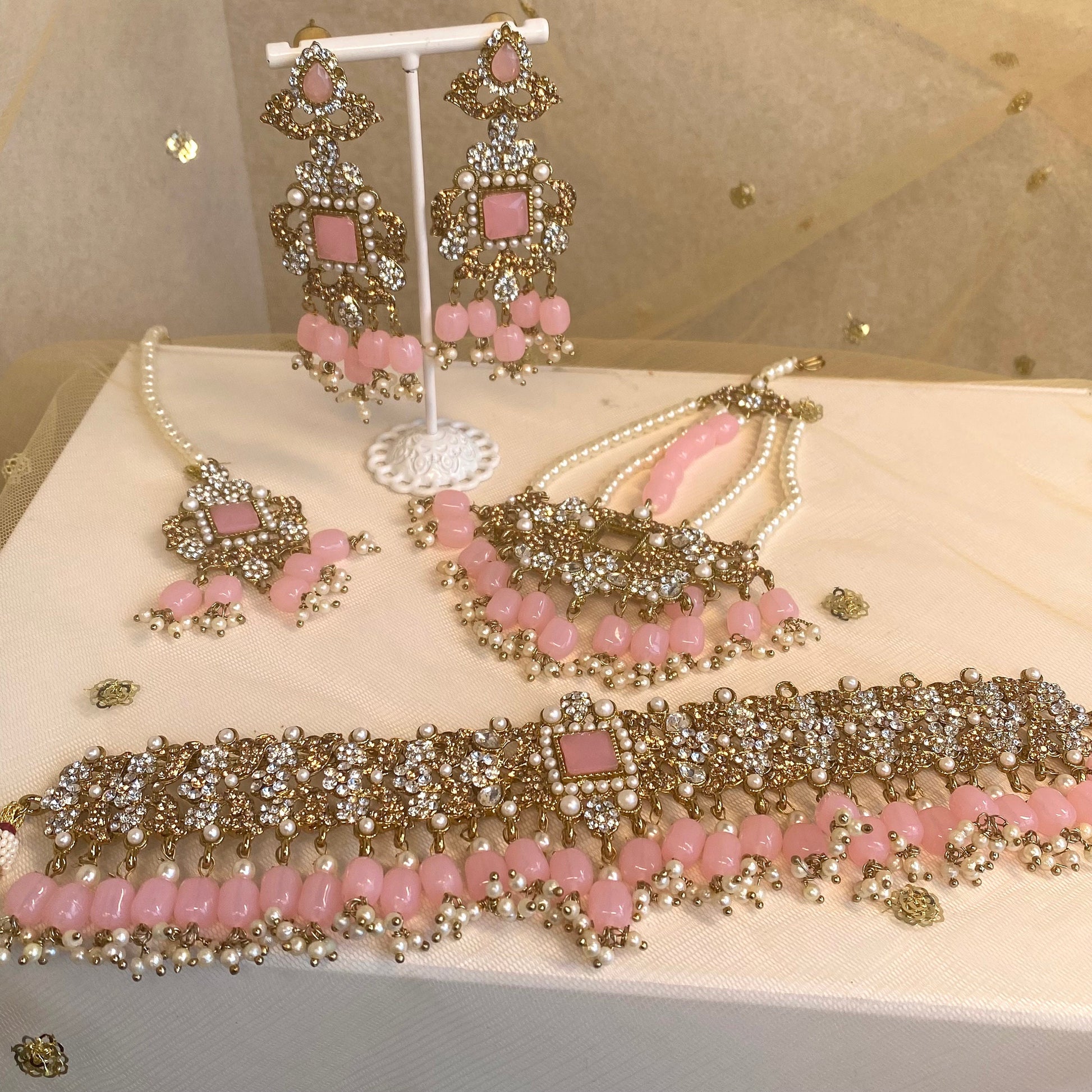 Bridal Pink Choker complete with Jhumar/ Unique Style/ Indian/ Pakistani/Fashion Jewellery/ Gift for Women