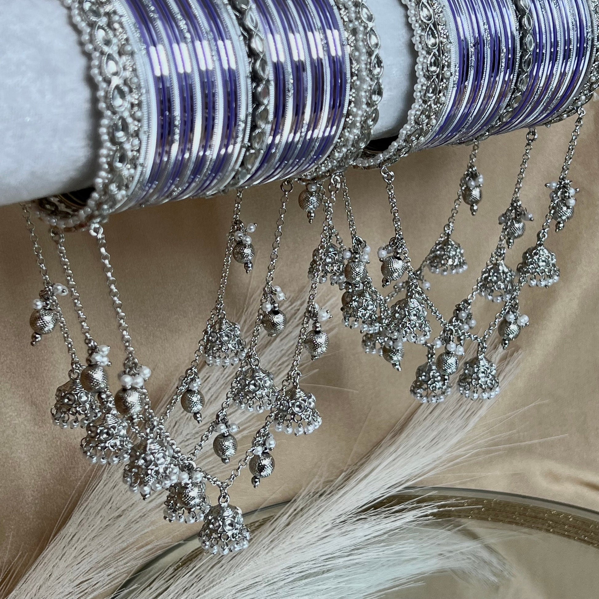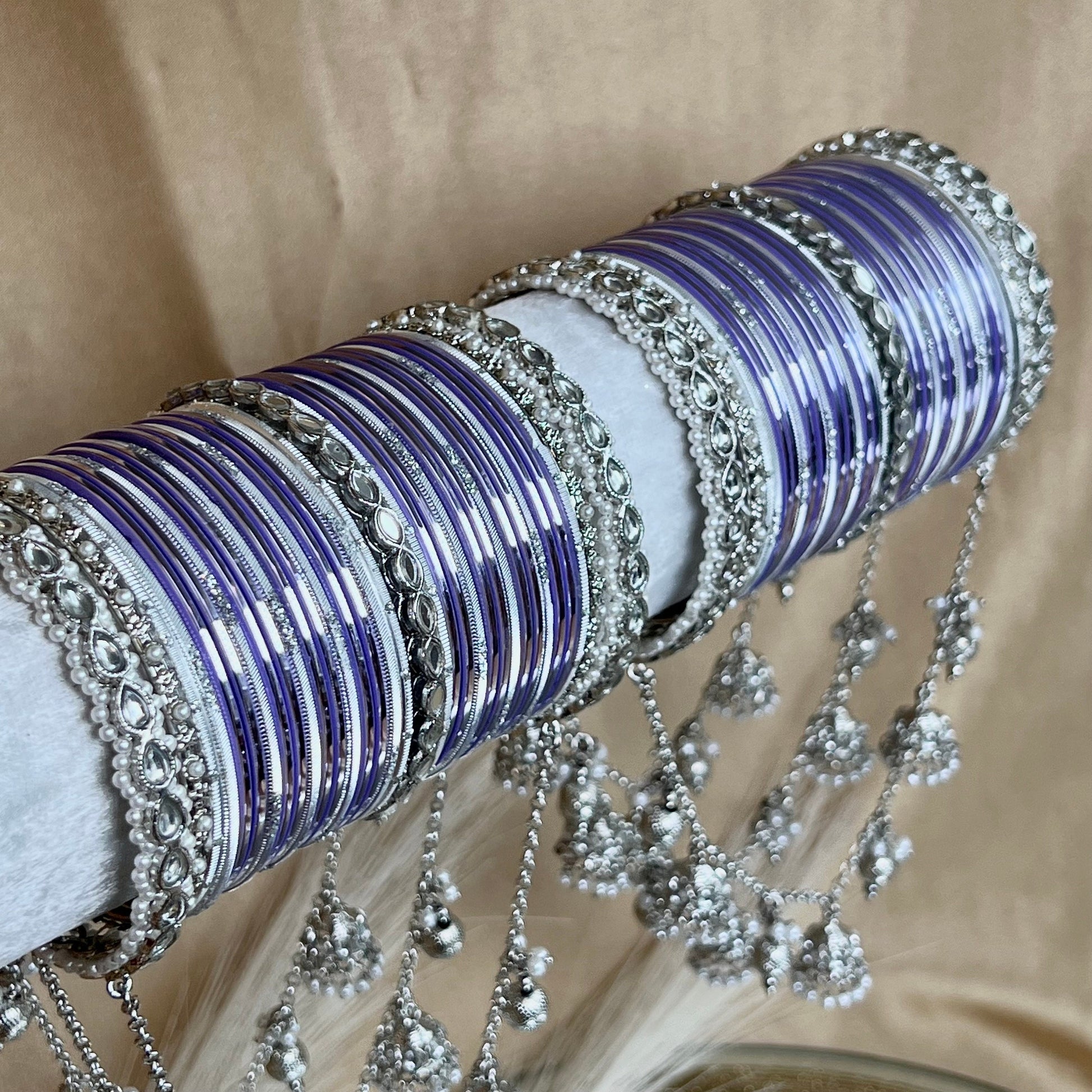 Bridal Silver/Lilac Full Bangle Set/Indian/ Pakistani/Jewelley/ Fashion Bracelet