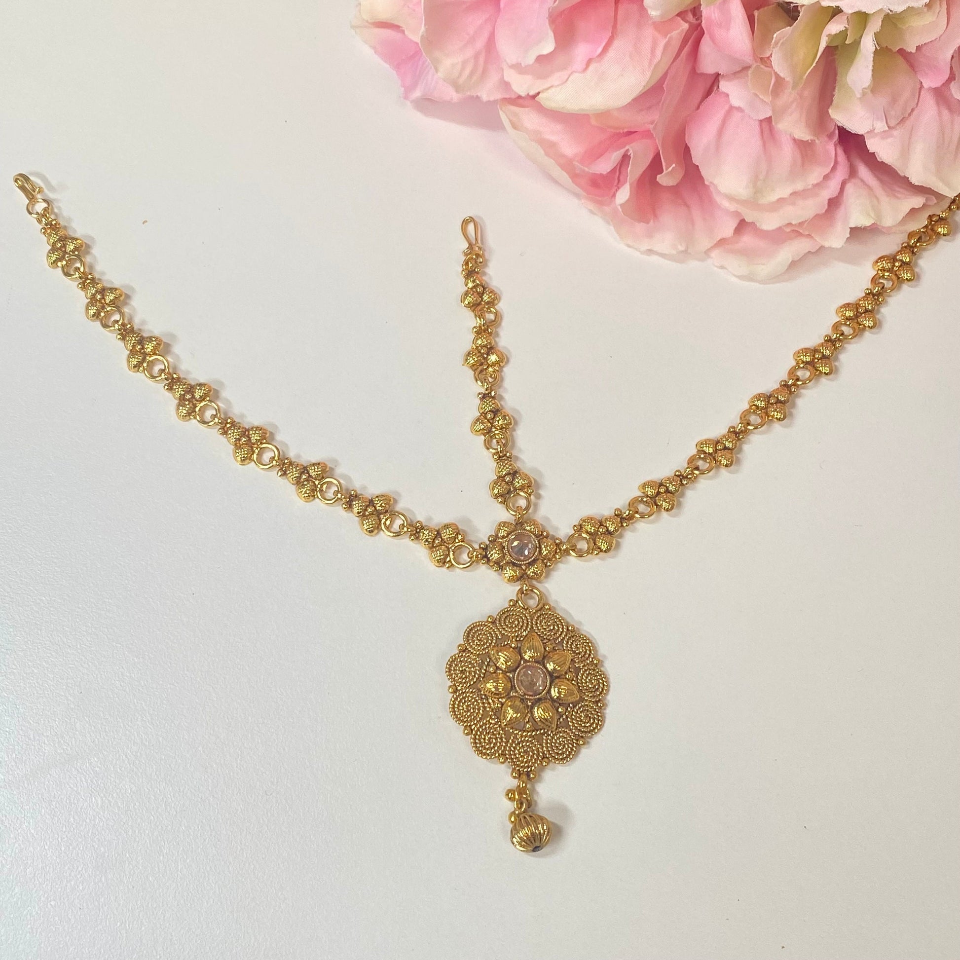 Bright Gold Mathapatti /Indian/Pakistani/Fashion Jewellery/ Bridal Forehead Jewellery Headpiece/Bollywood /phoolpatti