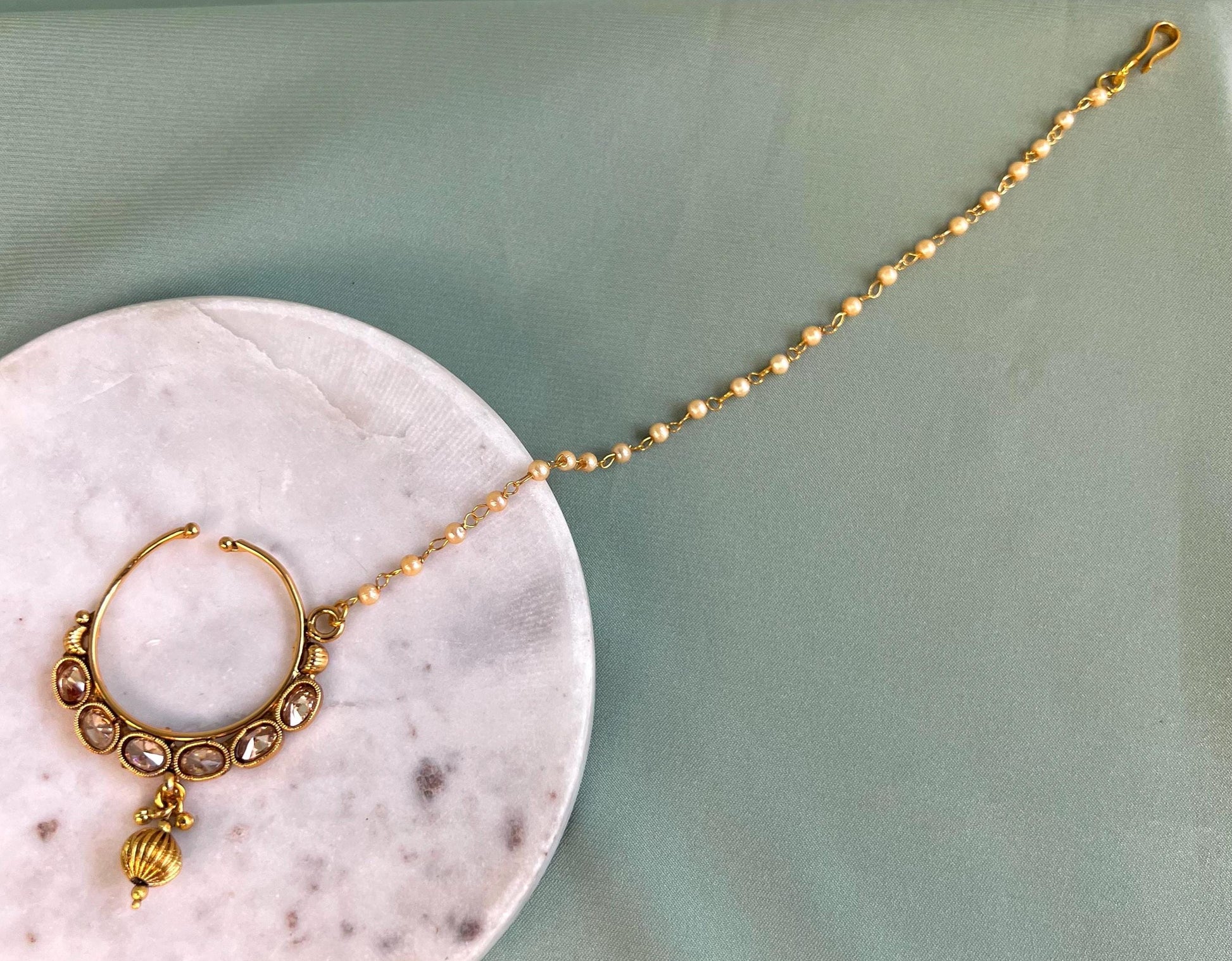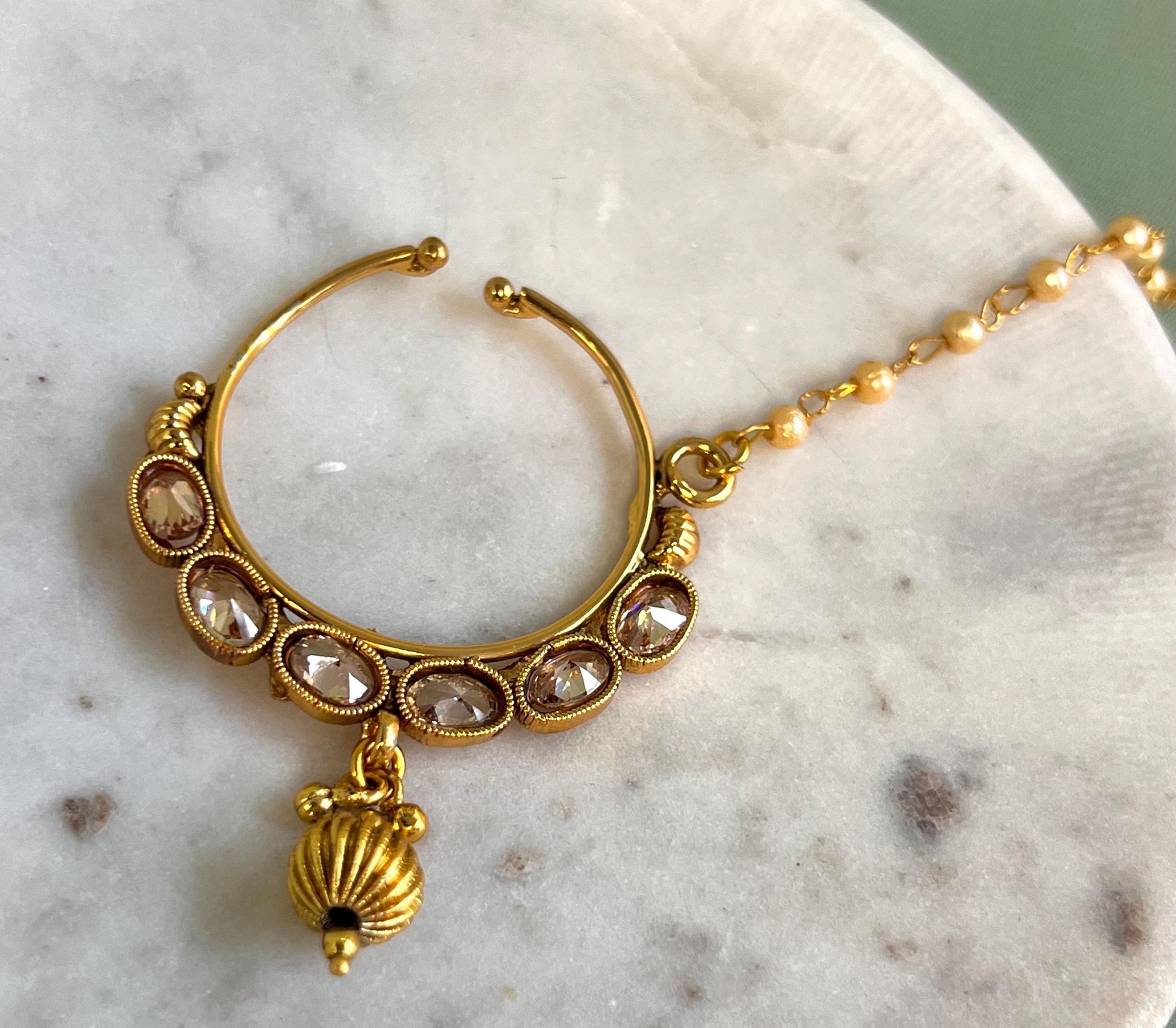 Bright Gold Non-Piercing Nose Ring Pearly Chain Included/ Fashion Jewellery/ Gift/ Indian/Nath /Indian Nose Jewellery/Slide Type Nose Ring