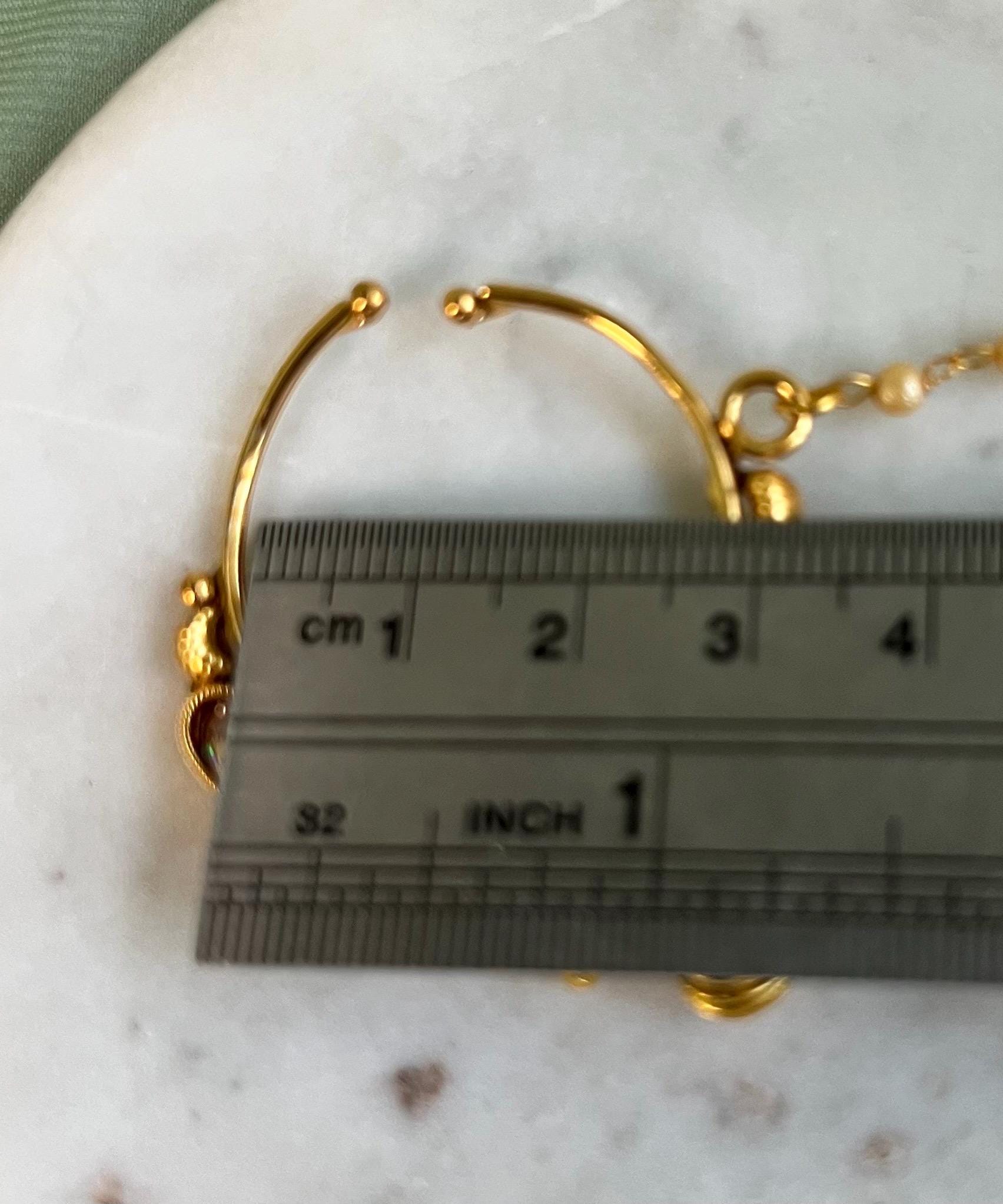 Bright gold nose ring with chain designed to be adjusted in with to hug the nostril tightly by sliding on.
