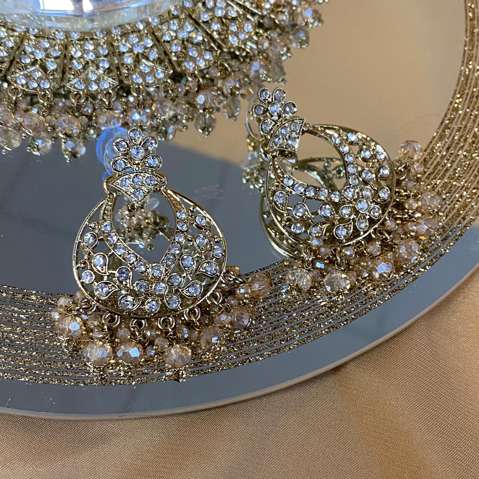 Champagne & Clear Necklace Set/ Indian/ Pakistani Style/ Wedding/ Fashion Jewellery/ Necklace set