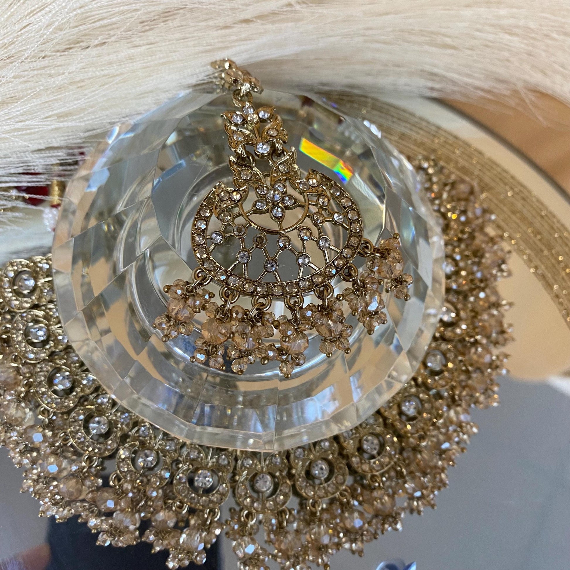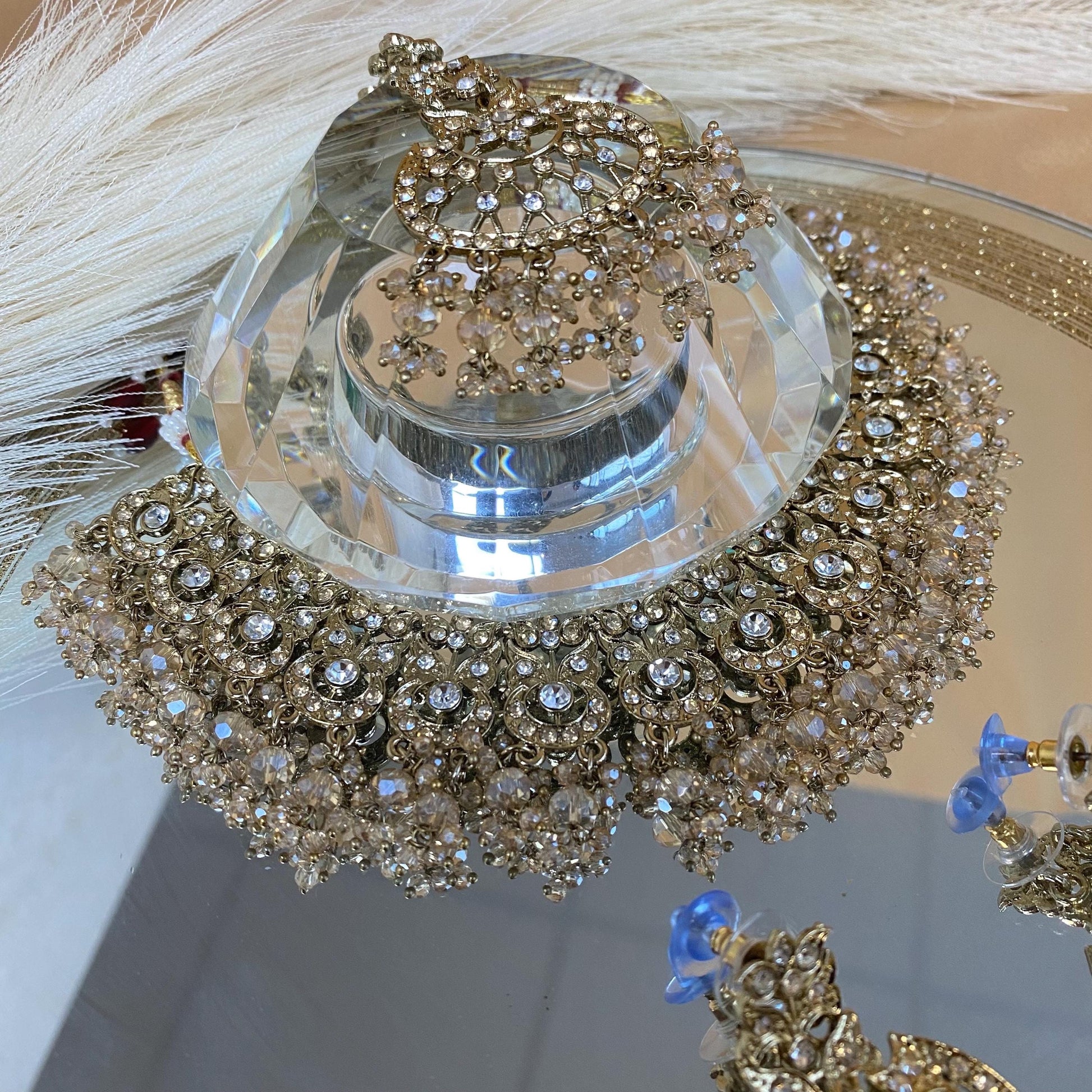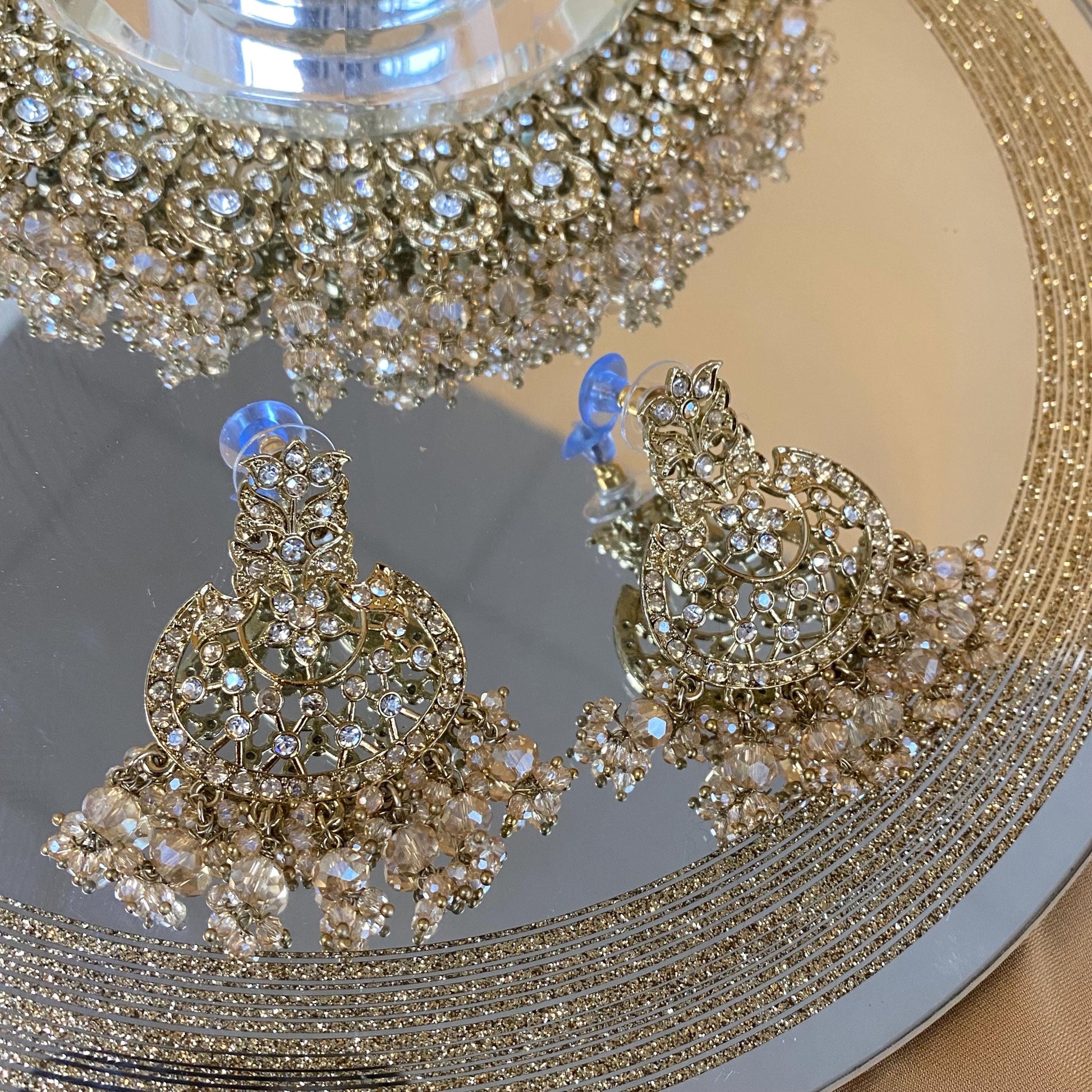 Champagne & Clear Necklace Set/ Indian/ Pakistani Style/ Wedding/ Fashion Jewellery/ Necklace set