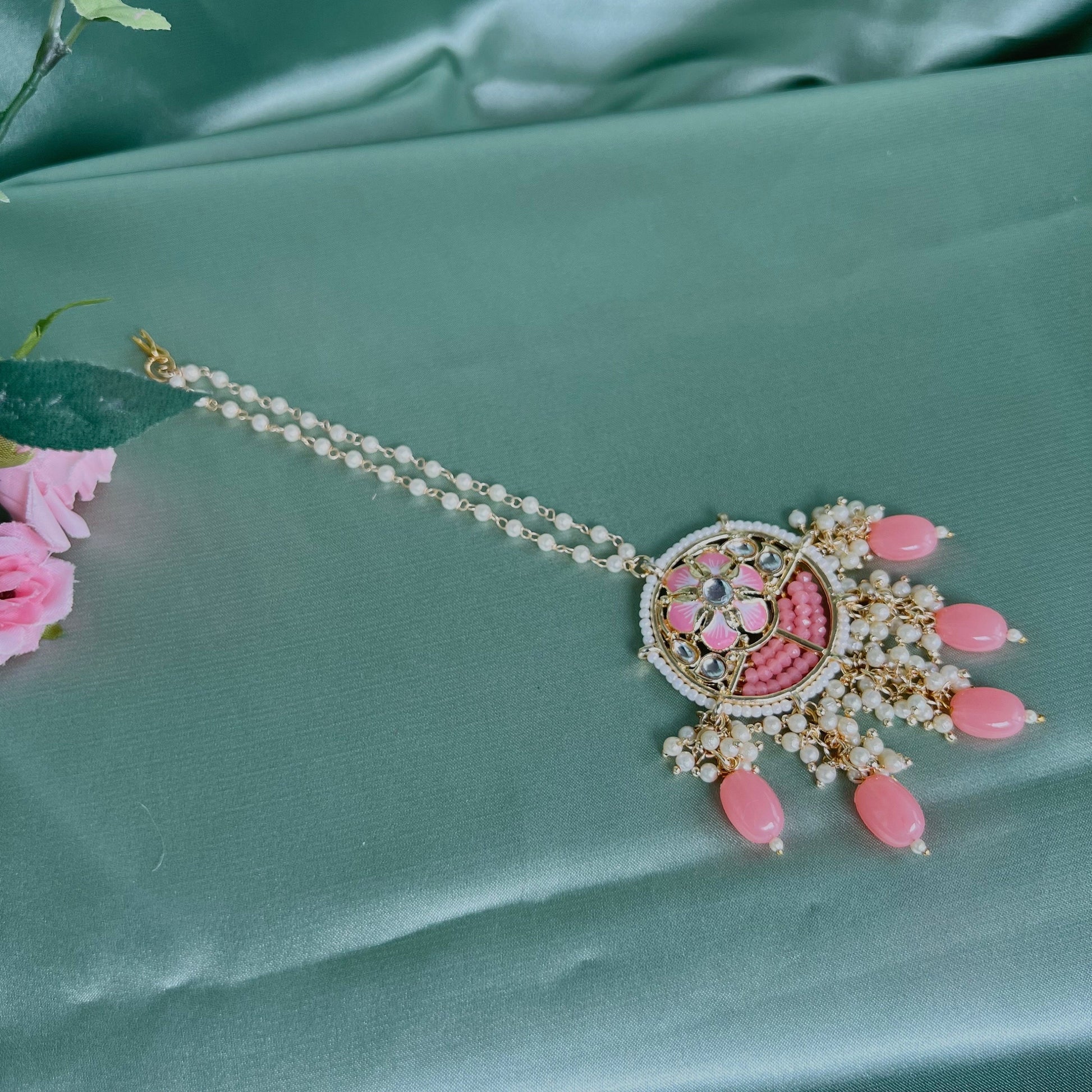 Coral Meenakari/Faux Kudan Pearl tikka/ Tikli/ Indian/ Pakistani Fashion Jewellery/ Maang Tikkas