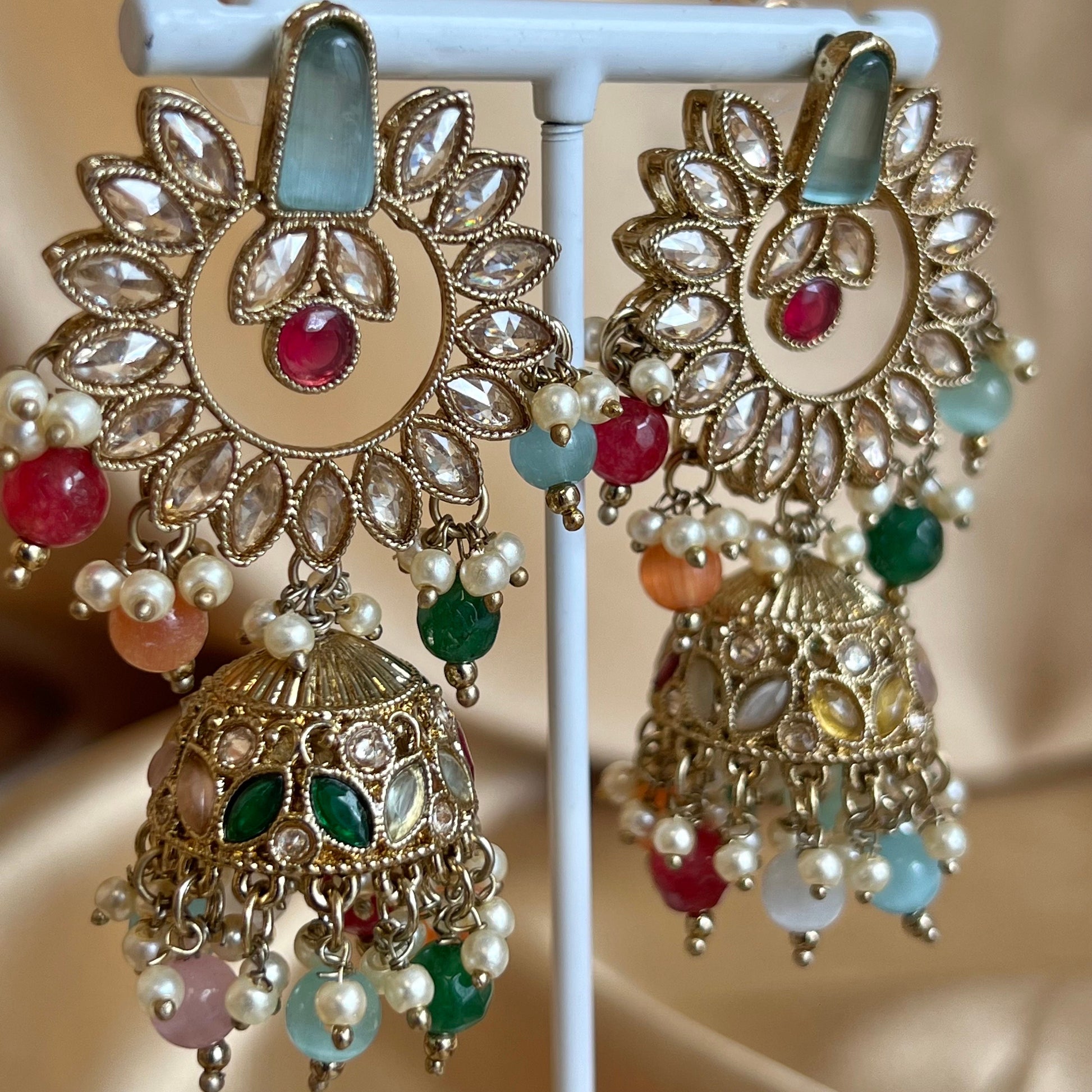 Crystal Earrings - Blue Multi colour/ Pink Pastels/Indian/ Pakistani Style