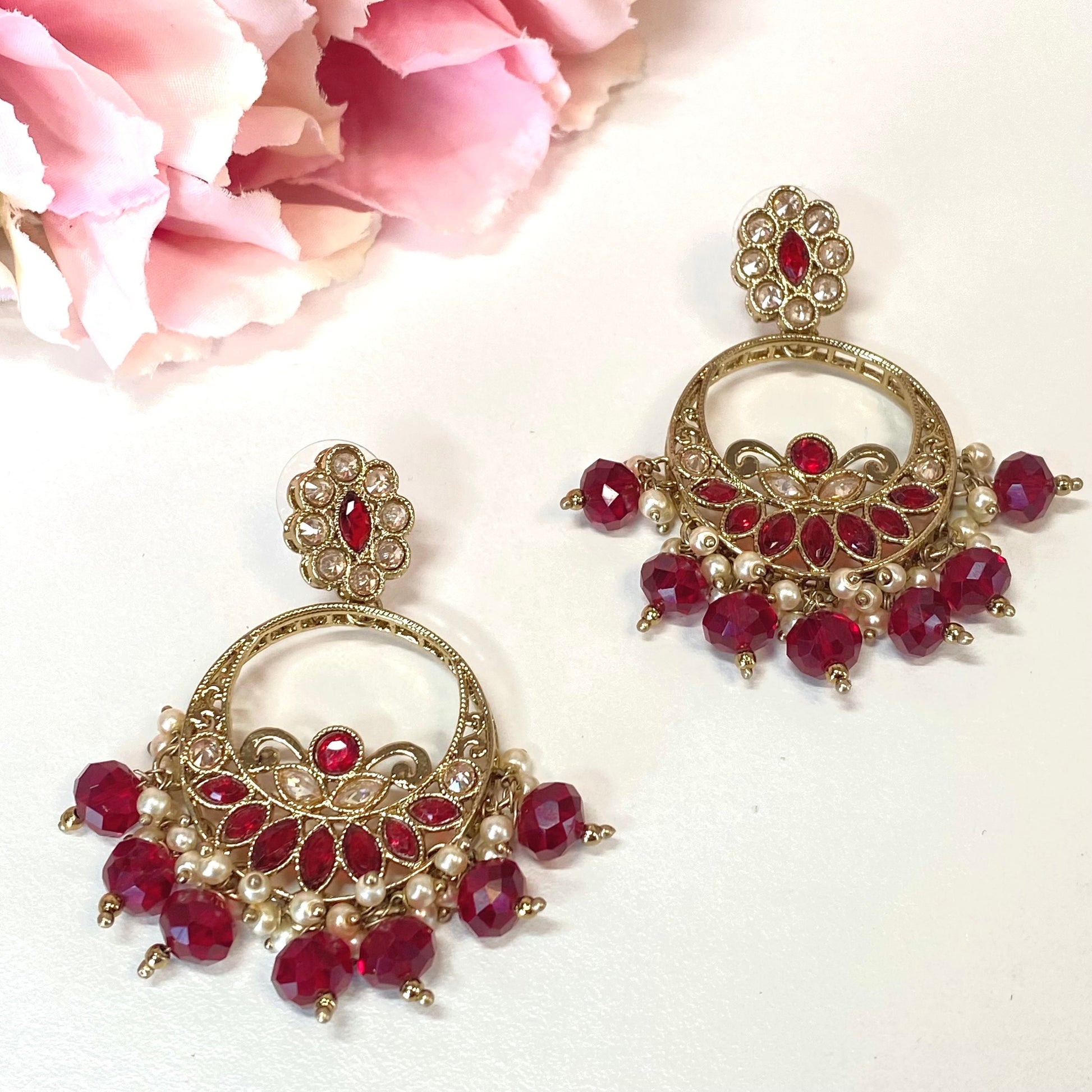 Crystal Earrings- Maroon