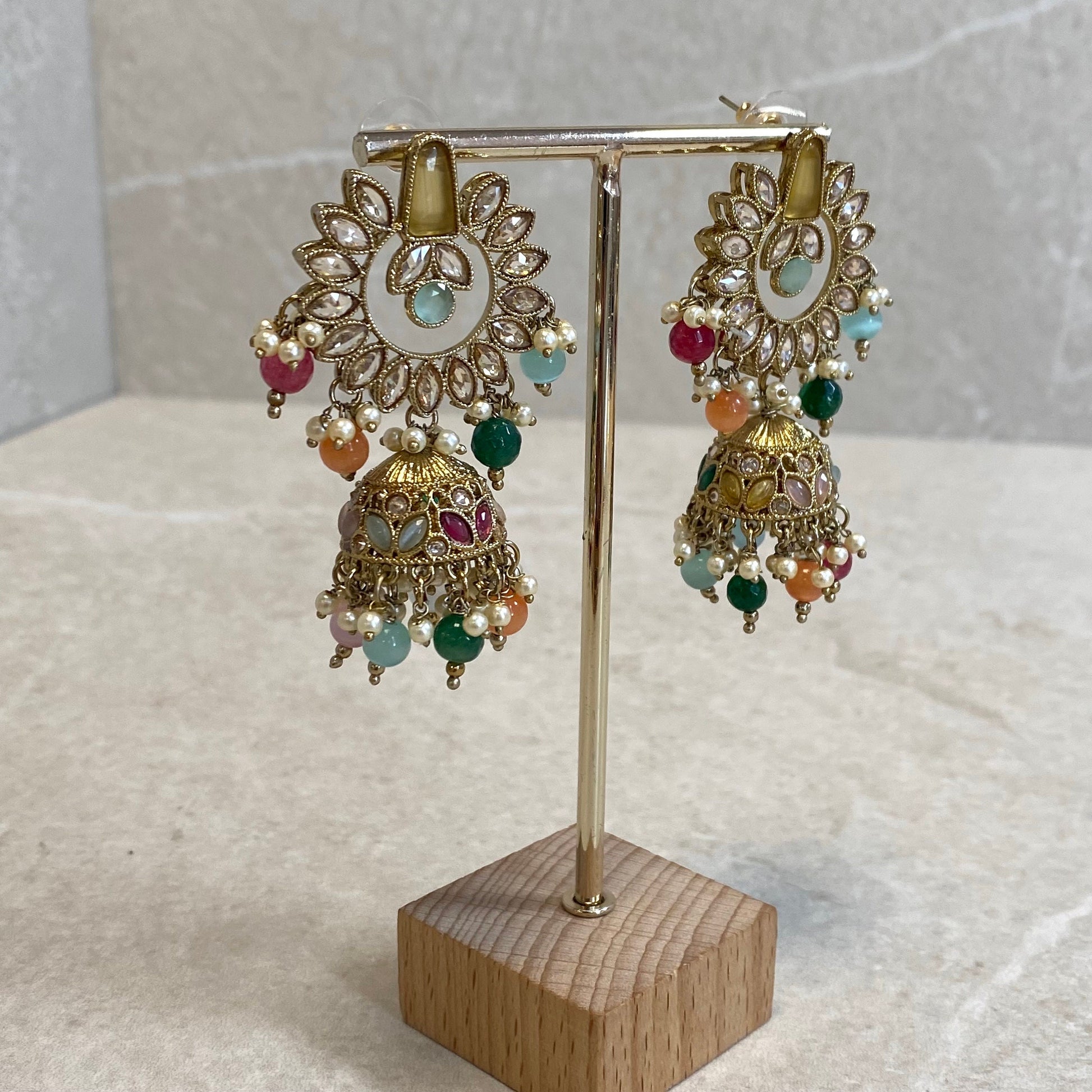 The most stunning multi colour crystal drop earrings, lightweight and adorned with zircon crystals and beautiful bead work.