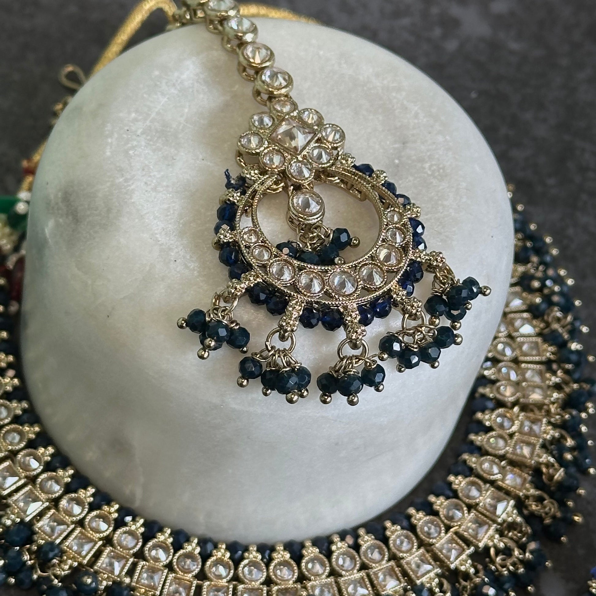 Crystal Indian Choker Set - Navy Earring/ Tikka/ Tikli/ Indian/ Pakistani/Fashion Jewellery/ Gift for Women
