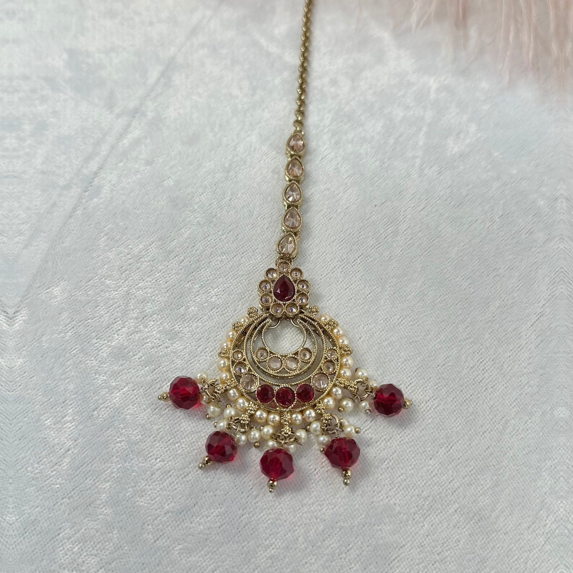 This medium size antique gold crystal tikka comes in 4 different colours.