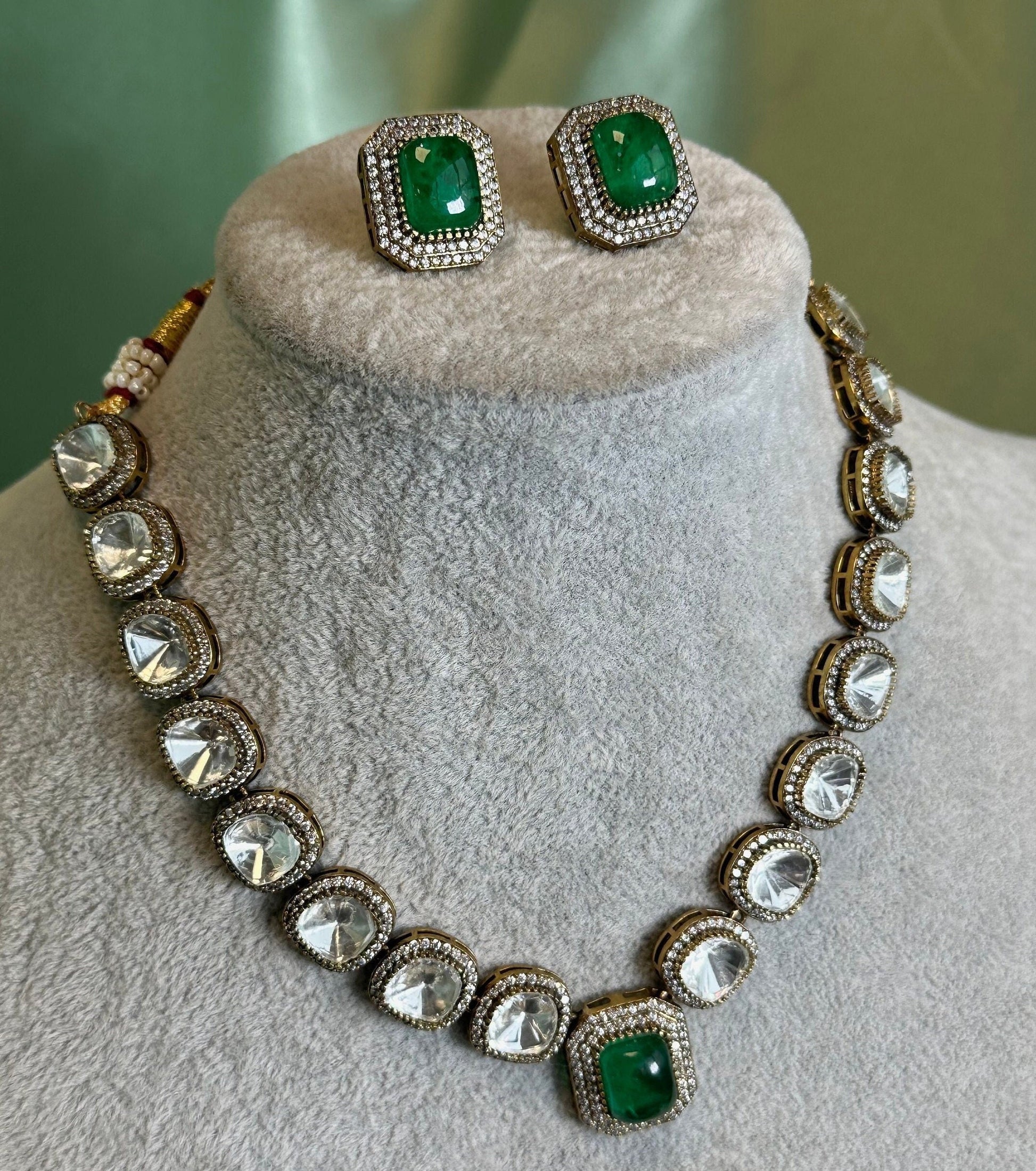 Emeralds Green Necklace Set/Sabyasachi Inspired Jewellery/Indian Jewellery/Bollywood Jewellery/Statement Set
