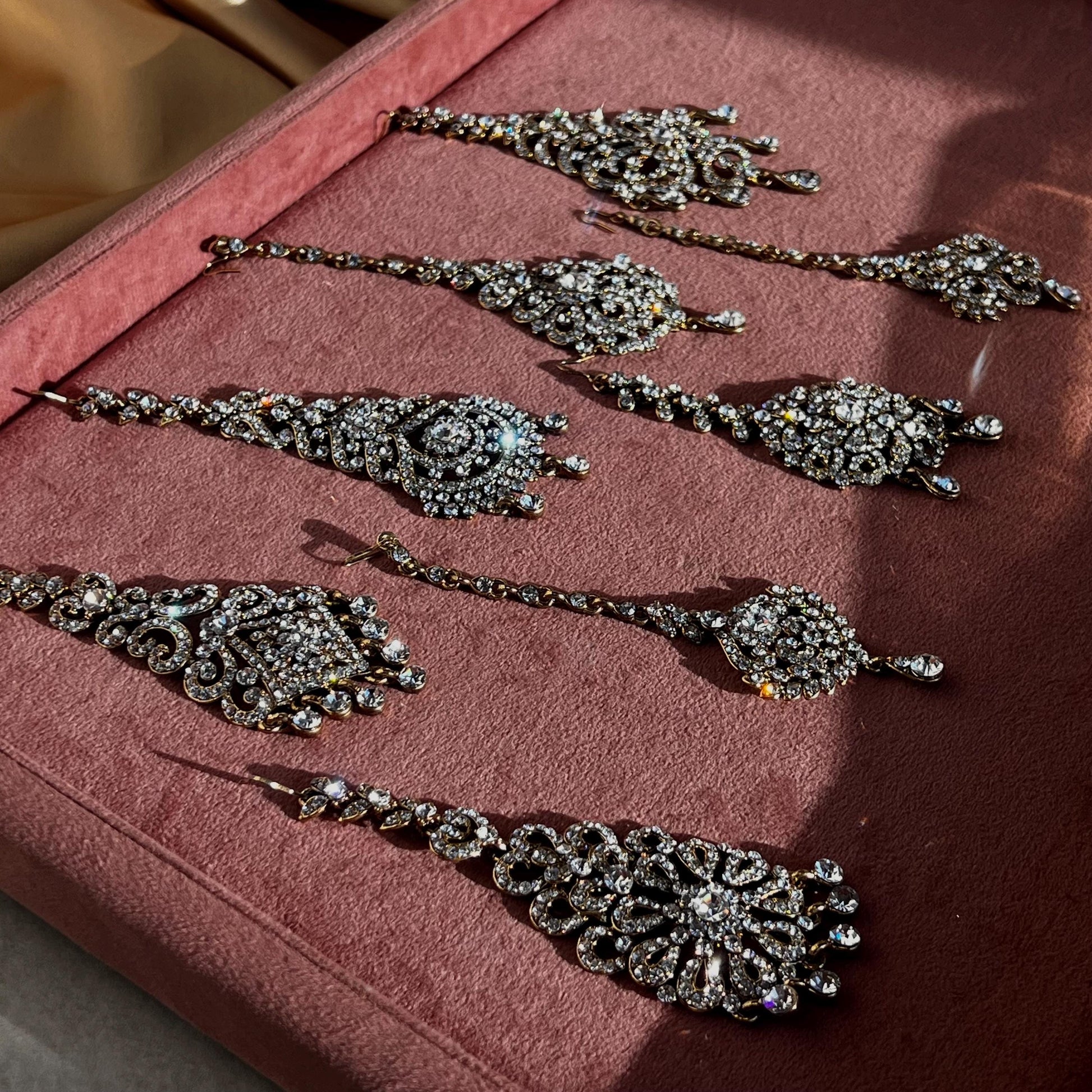Extra Large Fancy Clear Rhinestone Gold Base Indian Tikka High Quality Bollywood Indian Pakistani Fashion Jewellery Party Style