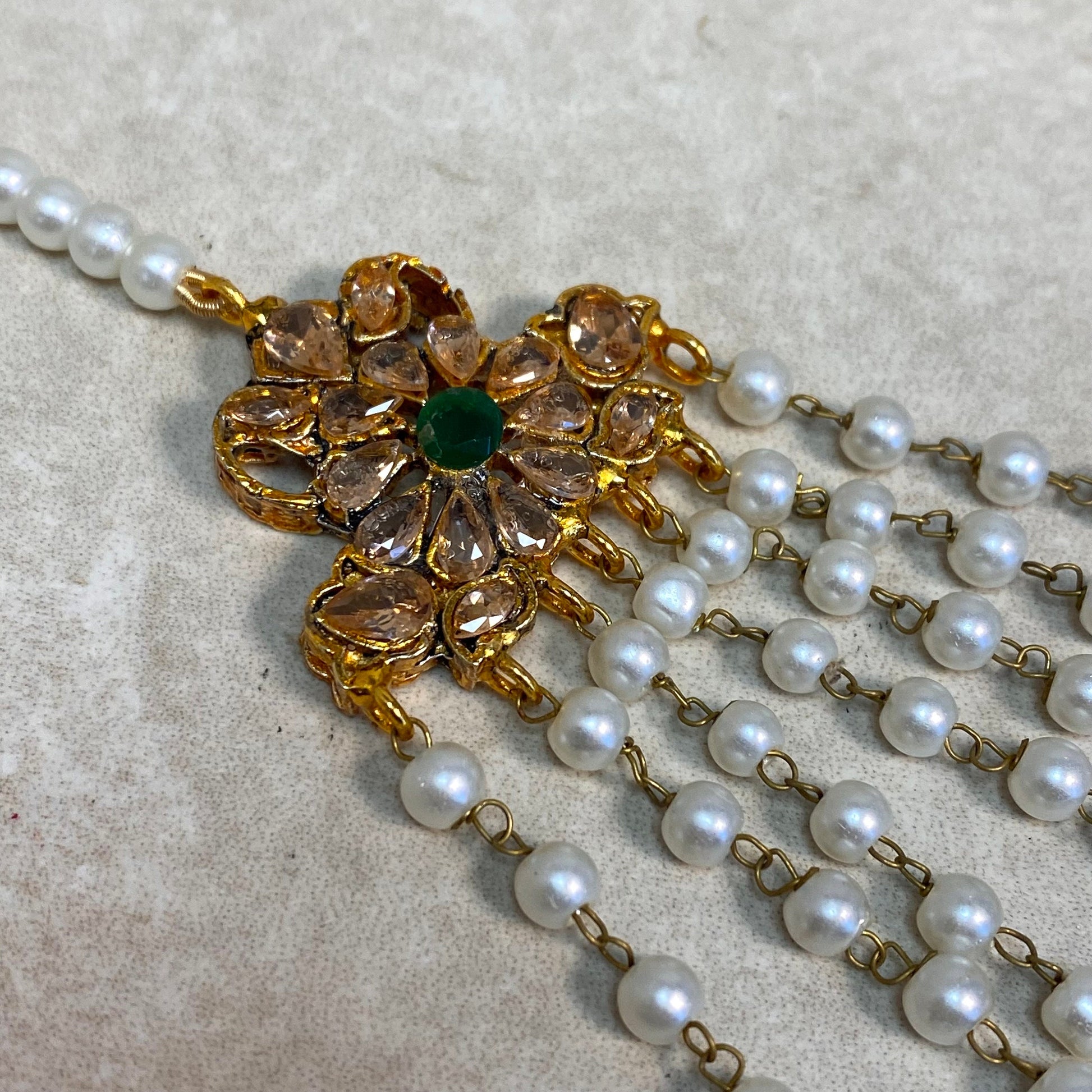 Extra Large Jhumar/Green/Gold Plated/Green Bead/Champagne zircon crystal/ Bright Gold/ Jhoomar / Passa/ Indian/ Pakistani Style/Head Piece