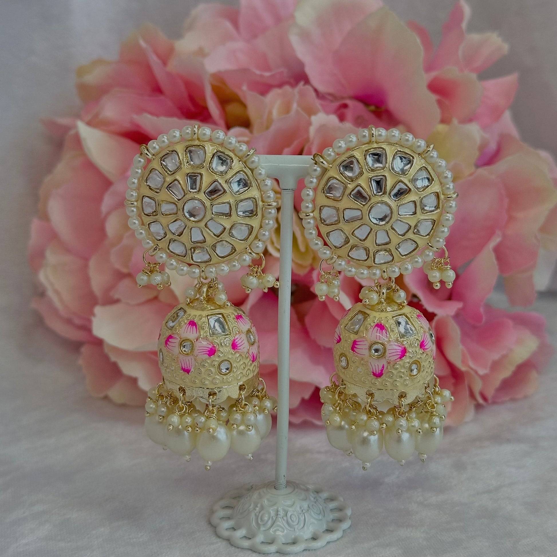 Faux Kundan Jhumka Earrings - Cream/ Indian Style Earring