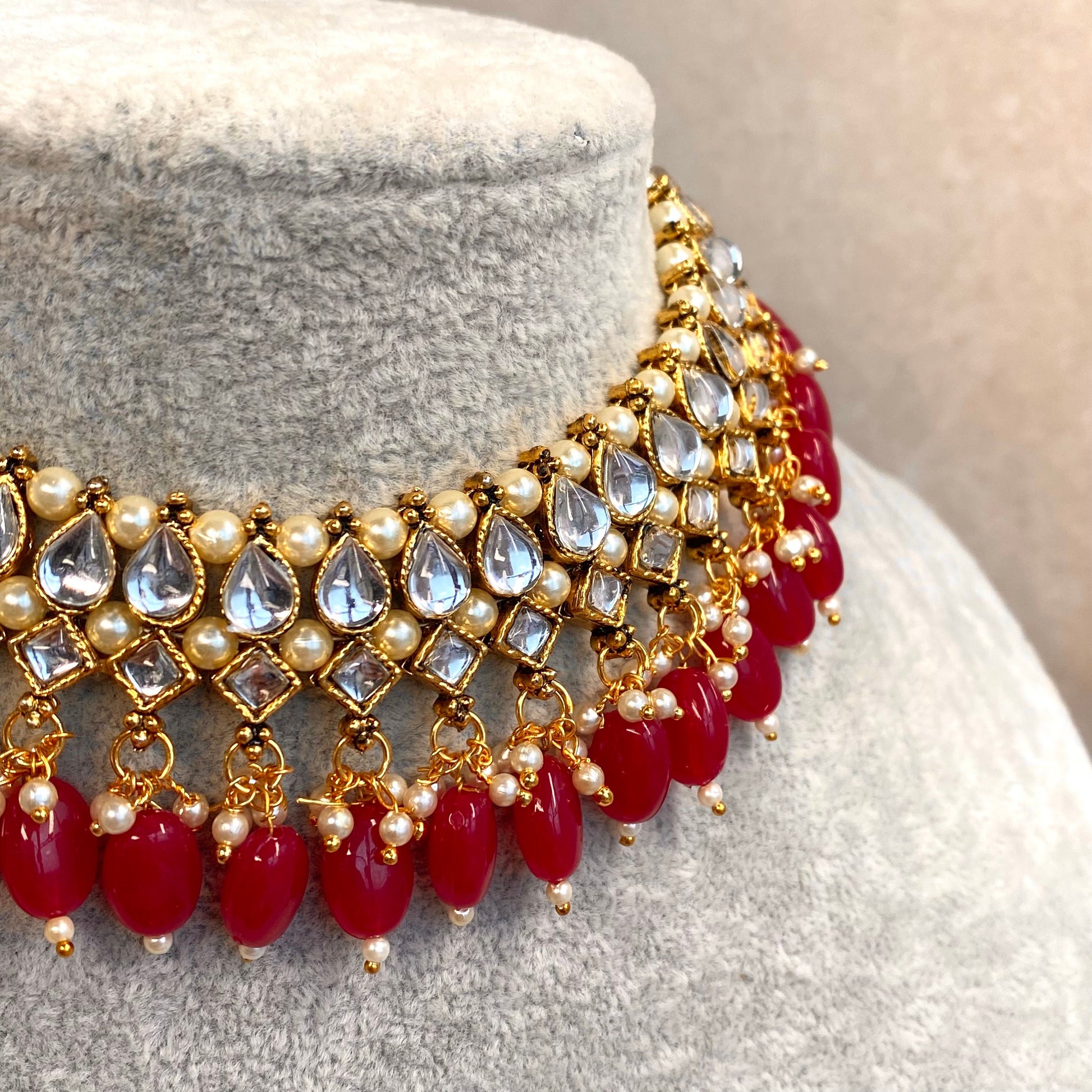 Faux Kundan Necklace set - Ruby/ Indian/ Pakistani Style/ Choker/ Earring/ Tikka/Wedding/Party
