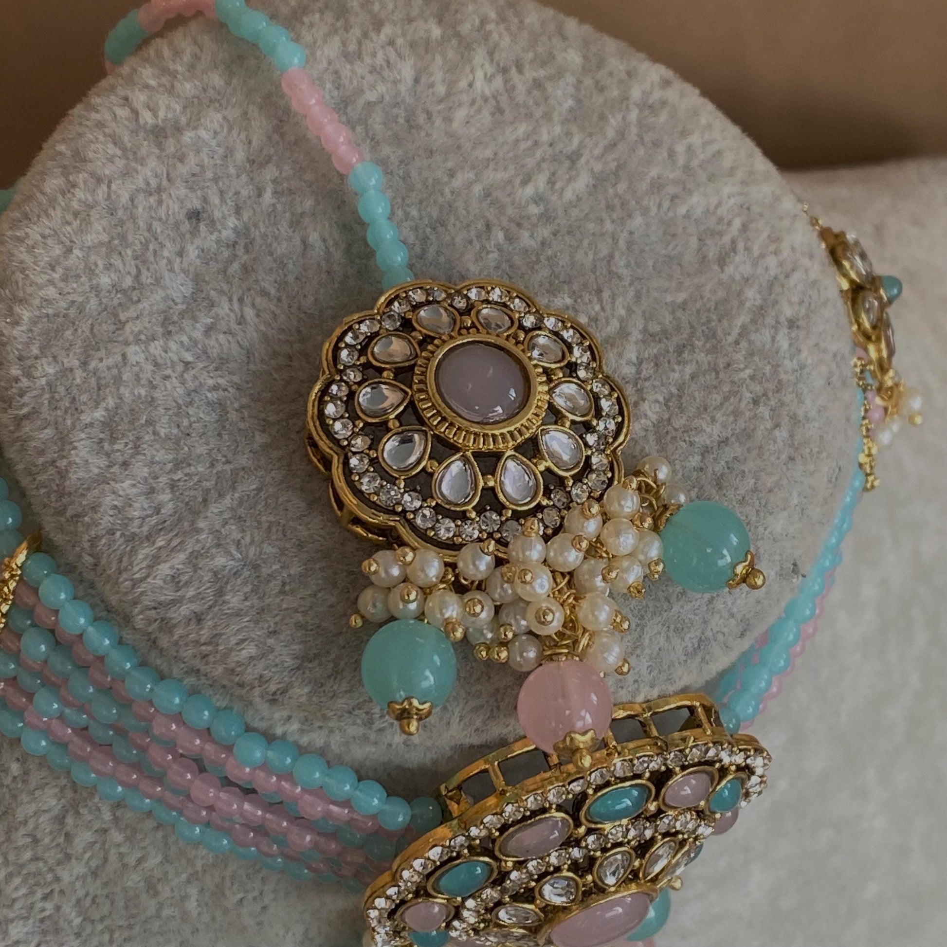Faux Kundan Pastel Pearl Choker set Earring/ Tikka/ Tikli/ Indian/ Pakistani/Fashion Jewellery/ Gift for Women/