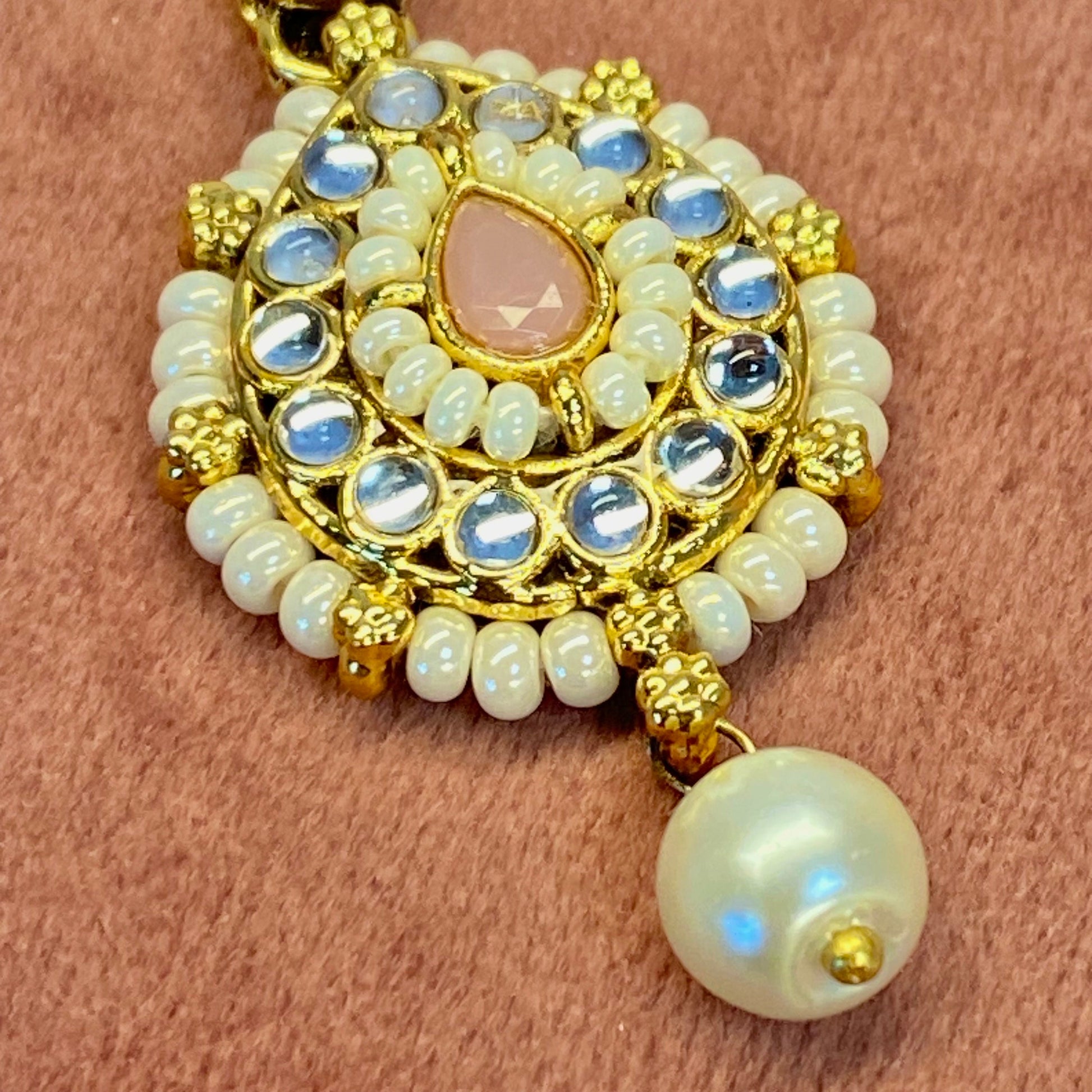 This small size faux Kundan tikka with pink stone is perfect for any occasion