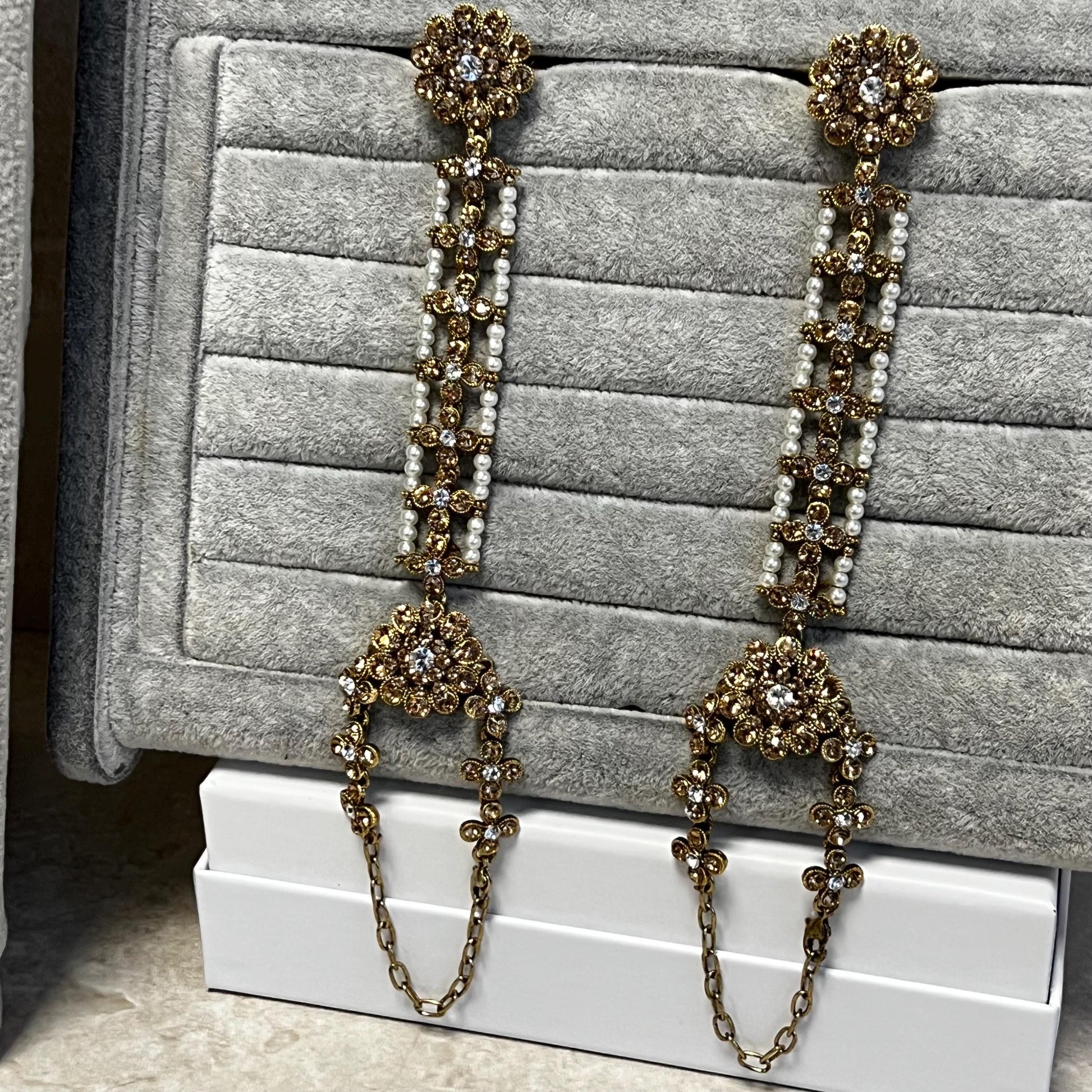 Antique gold base with gold stonework mixed with clear stones & white pearls.