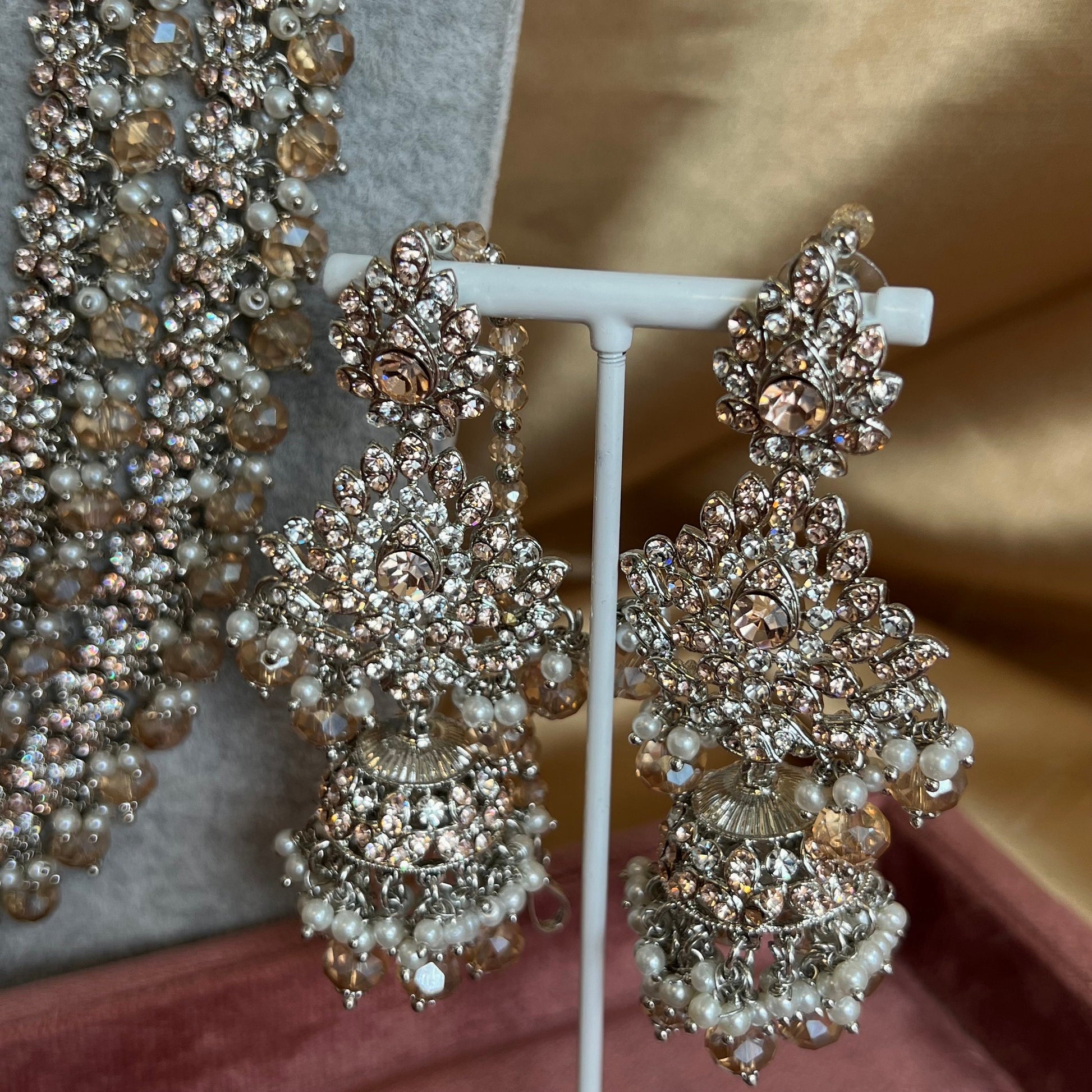 Full Bridal Set - Peach Indian/ Pakistani Style/Necklace, Choker, Earring, Tikka, Mala/ Haar/ Long necklace/ Hand harness/Wedding