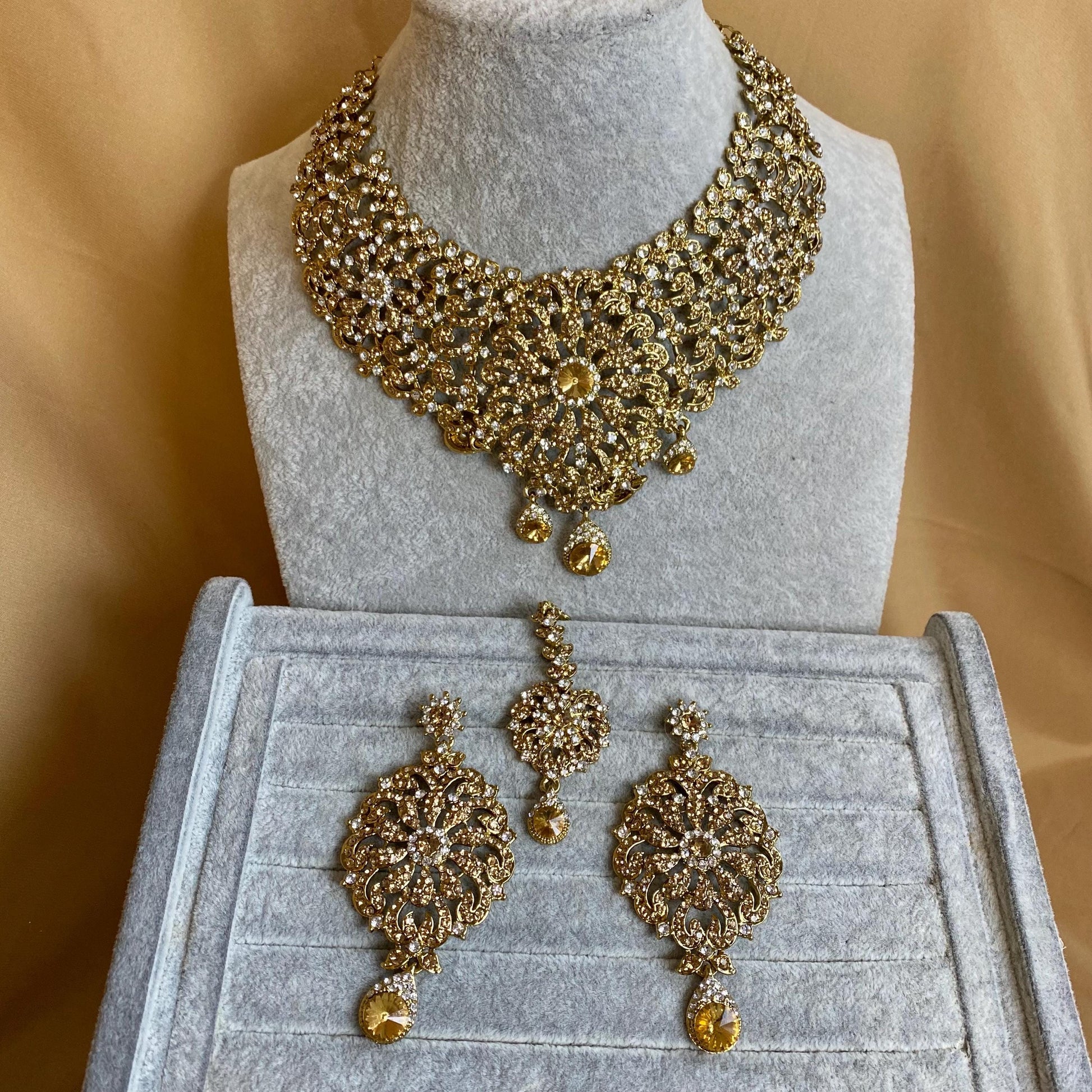 Golden & Clear Crystal Indian Necklace Set/Bridal Necklace Set/Reception/ Wedding/ Civil/Indian Jewellery