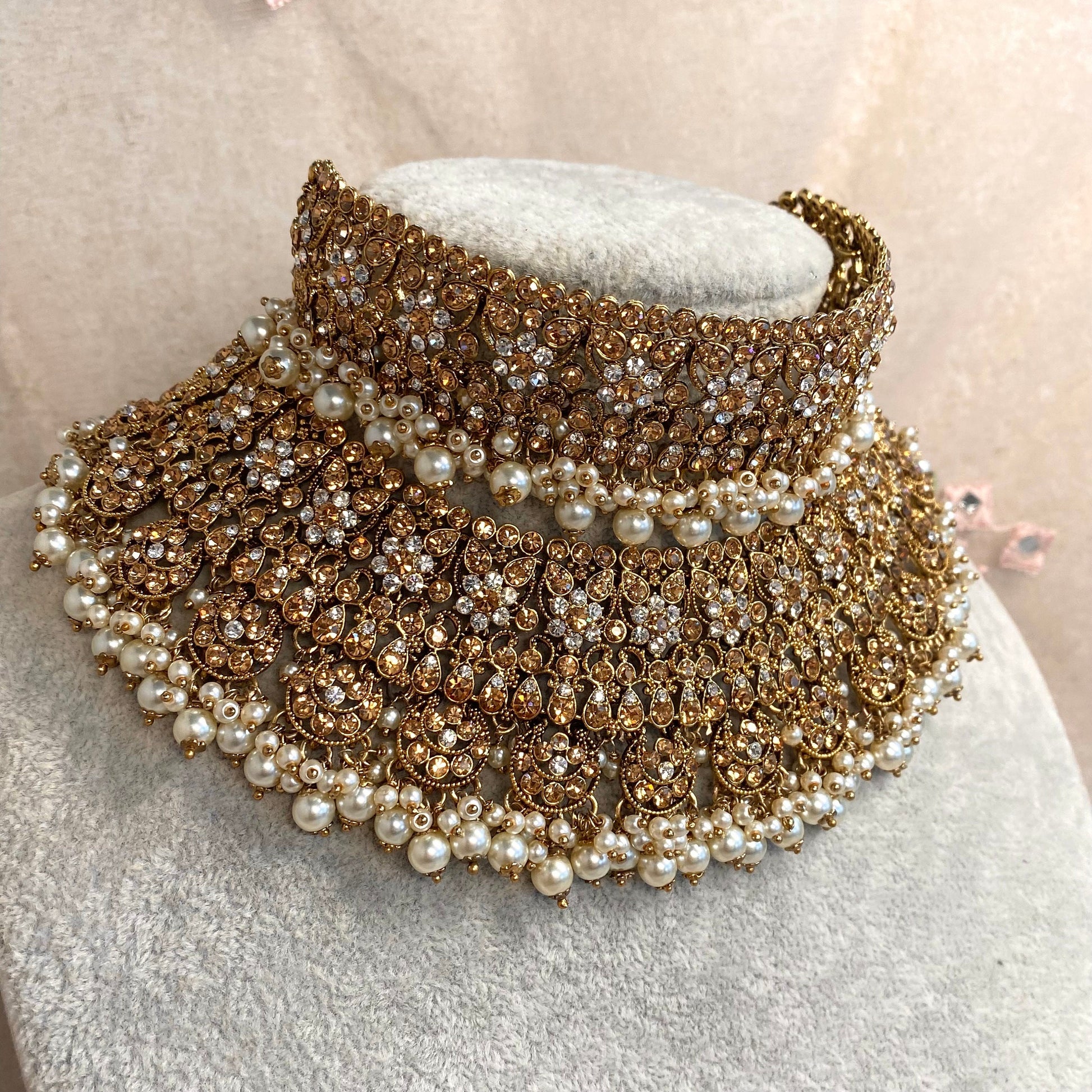 Golden Full Bridal set/ Indian/ Pakistani Style/ Choker/ Earring/ Tikka/Wedding