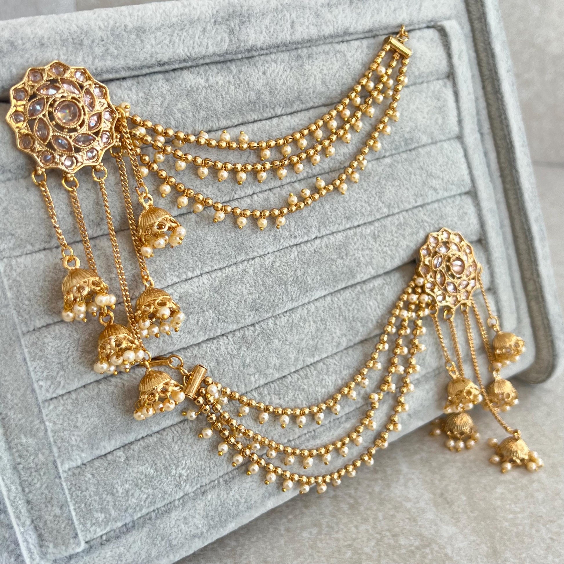 Golden Jhumka Earrings With Ear Chains/Saharay/ Indian Style Earring