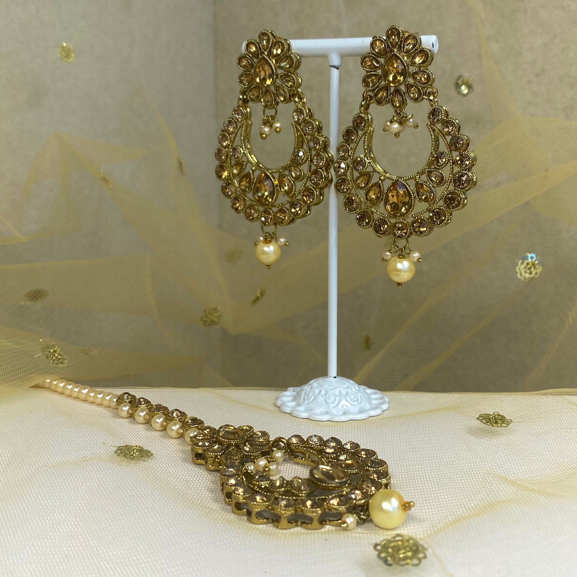 Golden Necklace and Earring/ Tikka/ Tikli/ Indian/ Pakistani/Fashion Jewellery/ Gift for Women