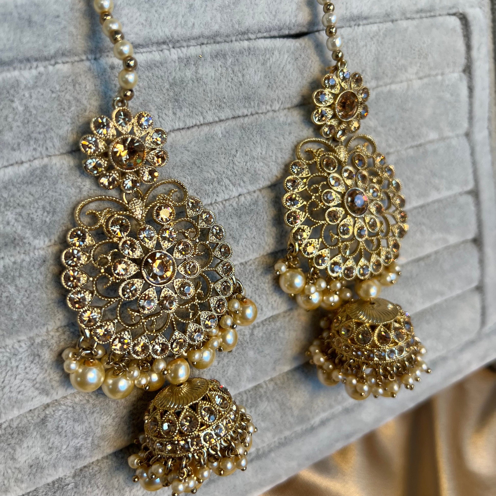 Golden Necklace and Earring/ Tikka/ Tikli/ Indian/ Pakistani/Fashion Jewellery/ Gift for Women