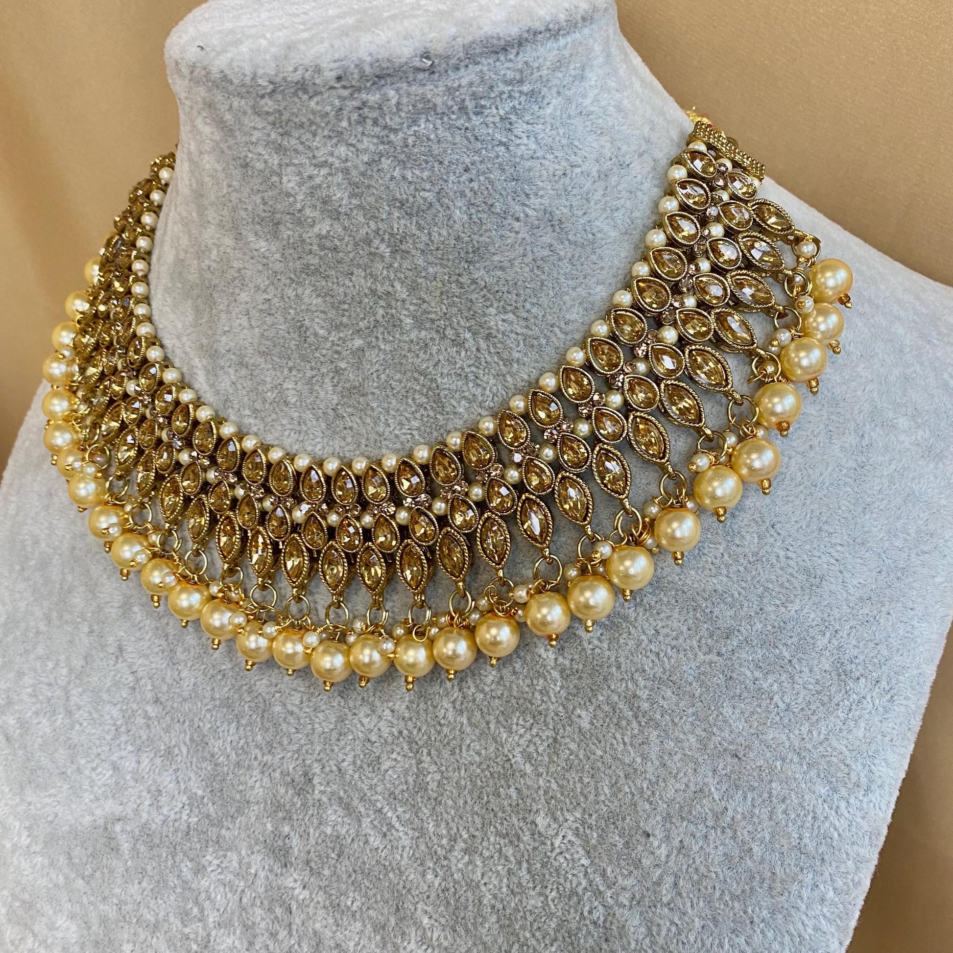 Golden Necklace Set/ Gold Necklaces/Gold Earrings/ Gold Tikka/ Indian/ Pakistani/Fashion Jewellery/ Gift for Women