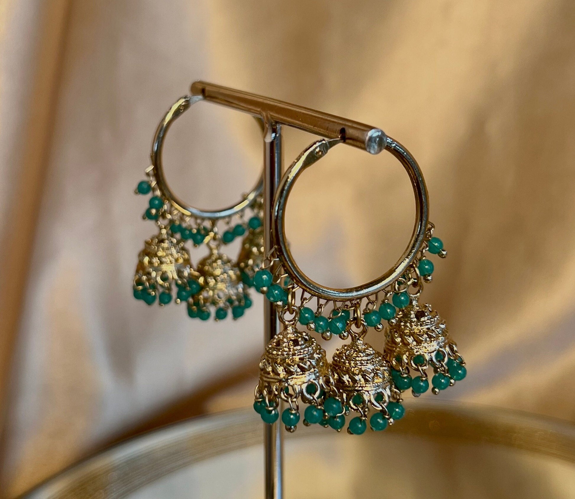 Green Antique Gold Medium Jhumki - Hoops Indian Style Earrings/Gifts for Women