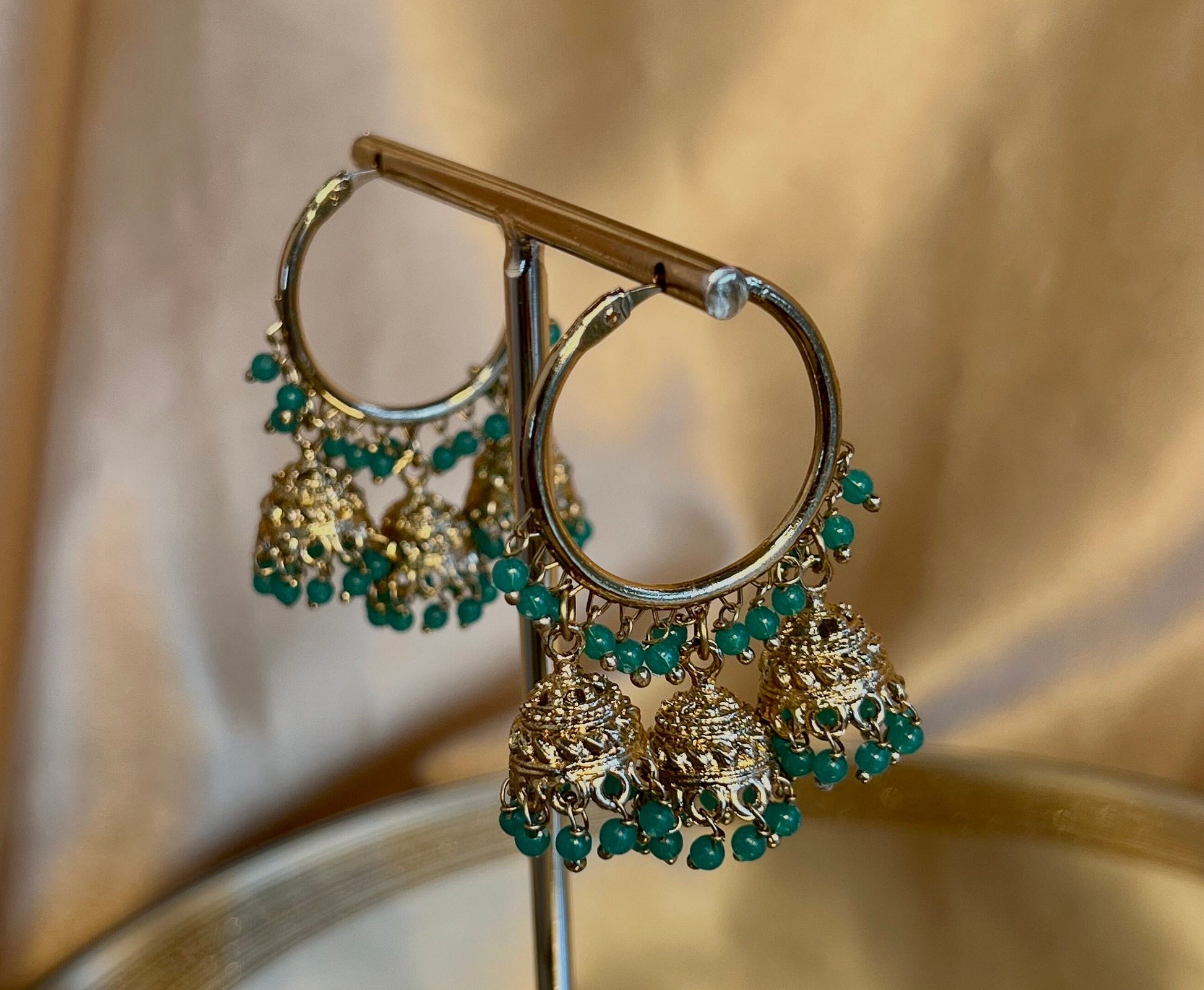 Green Antique Gold Medium Jhumki - Hoops Indian Style Earrings/Gifts for Women