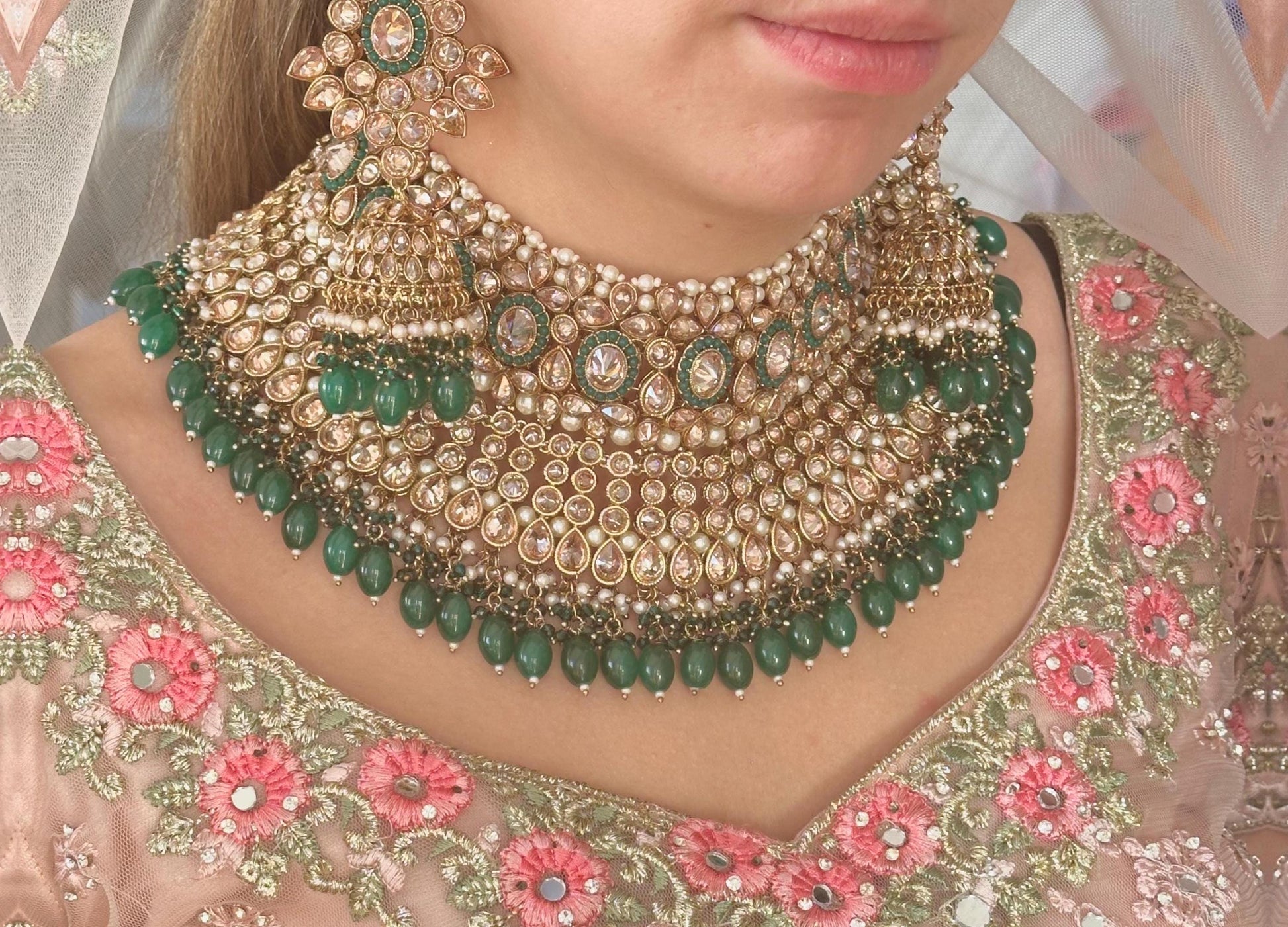 Green Bridal Necklace set Indian/ Pakistani Style/ Wedding/ Fashion Jewellery/ Necklace set